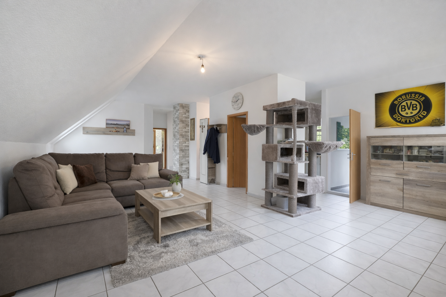 Sie betreten die Wohnung und gelangen zunächst in einen kleinen Eingangsbereich mit Platz für eine Garderobe. Von hier aus öffnet sich der mit 44 m² großzügige