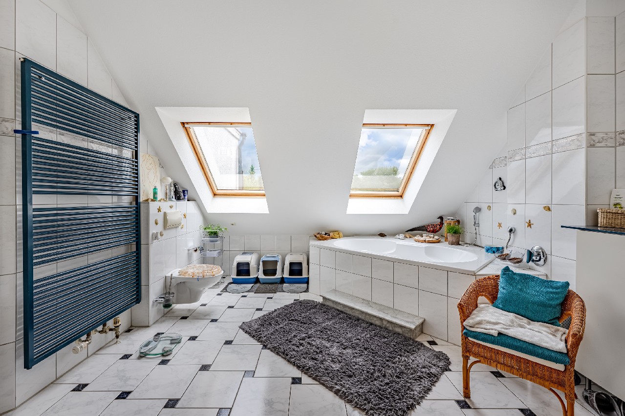 – einheitlich geflieste Böden im Dachgeschoss
