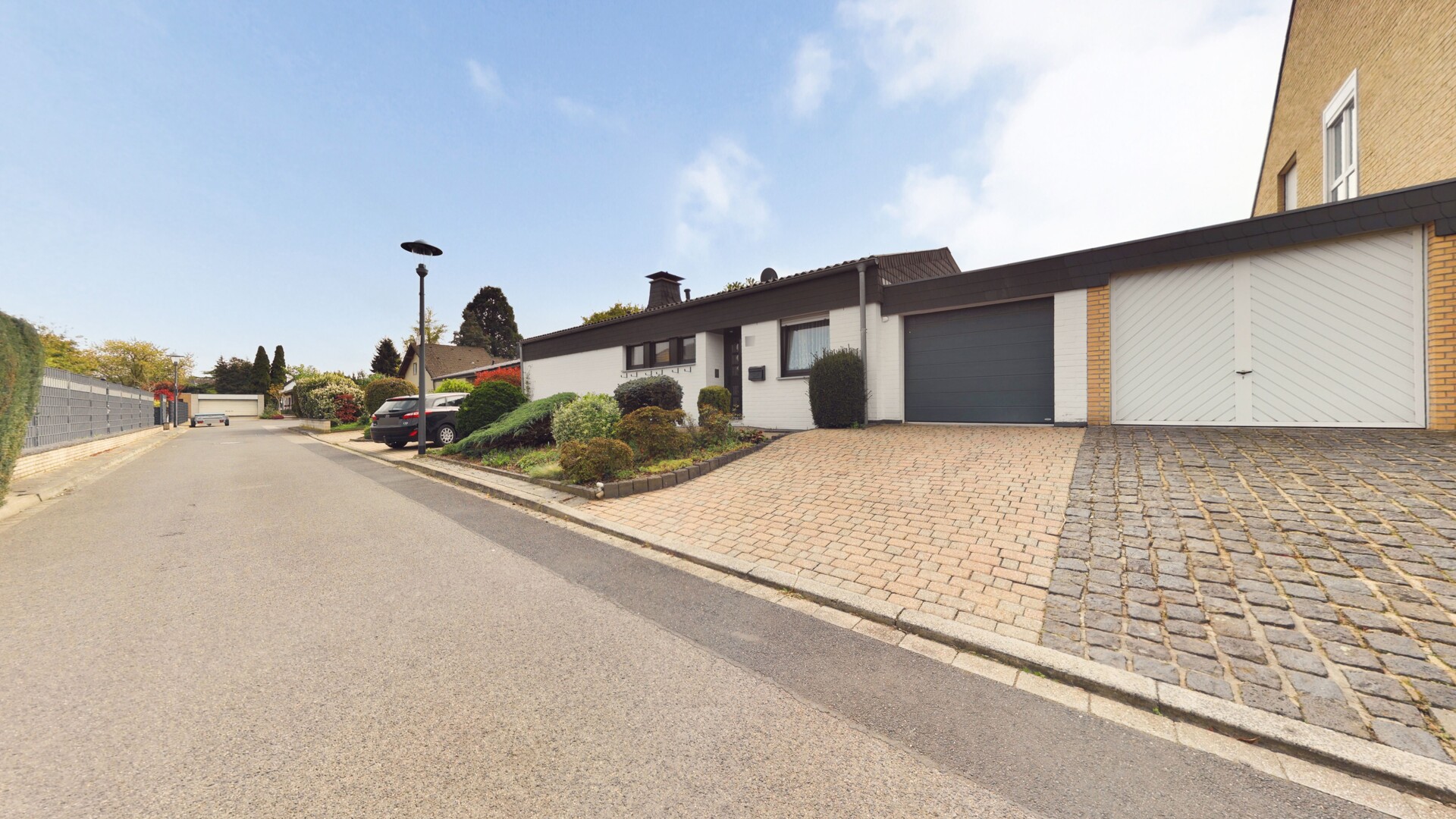 • Dieser im Jahr 1973 in solider Massivbauweise errichtete Bungalow vereint zeitlose Architektur mit dem begehrten Komfort des barrierearmen Wohnens auf einer Ebene. Auf einem ca. 711 m² großen Grundstück in einer ruhigen, gewachsenen Wohnstraße gelegen, besticht die Immobilie durch ein äußerst gepflegtes Gesamtbild und eine durchdachte Raumstruktur. Schon beim Annähern an das Objekt vermittelt die gepflegte Nachbarschaft ein Gefühl von hoher Lebensqualität. Die großzügige Einfahrt mit integrierter Garage, der separate Stellplatz und das rund um das Haus hochwertig erneuerte Altstadtpflaster unterstreichen den wertigen Charakter und sorgen für eine ästhetische Gestaltung der Außenflächen.