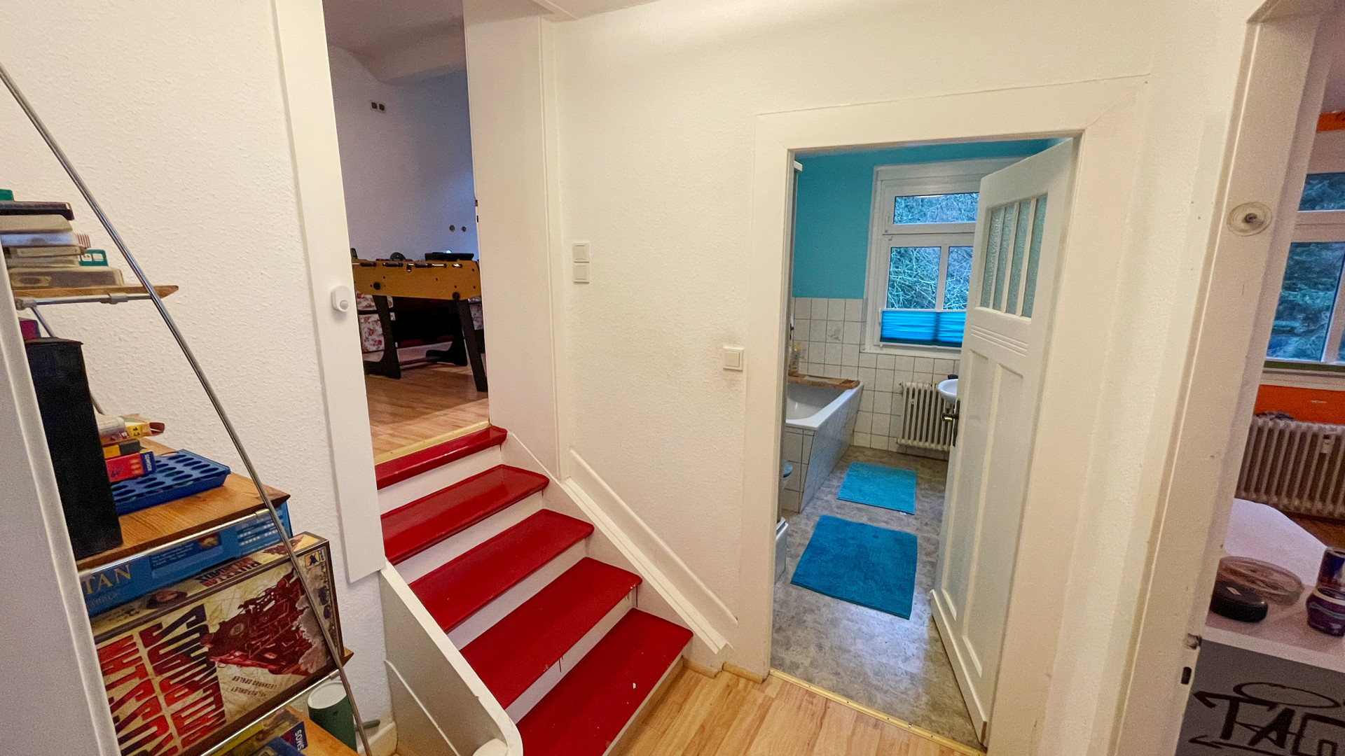 Die Immobilie liegt idyllisch in Ründeroth, direkt an der Agger. Die ruhige Lage und die reizvolle Flusslandschaft schaffen eine besondere Wohnatmosphäre mit hohem Erholungswert. Im Ort sind sämtliche Einrichtungen des täglichen Bedarfs vorhanden – darunter Supermärkte, Apotheke, Bank, Poststation sowie Bushaltestellen und der Bahnhof (RB25). Auch für Familien ist gesorgt: Kindergarten und Grundschule befinden sich in der Nähe, das Gymnasium im benachbarten Engelskirchen. Die Autobahn A4 ist in wenigen Fahrminuten erreichbar und gewährleistet eine gute Anbindung in Richtung Köln und Olpe.