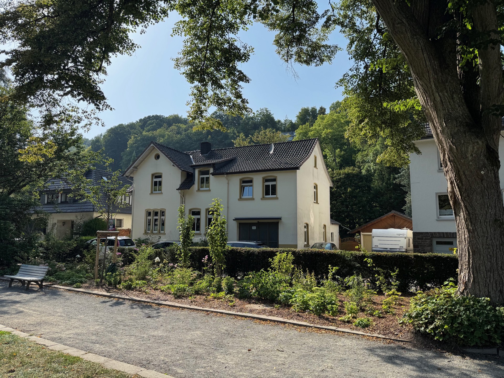 Die Immobilie liegt idyllisch in Ründeroth, direkt an der Agger. Die ruhige Lage und die reizvolle Flusslandschaft schaffen eine besondere Wohnatmosphäre mit hohem Erholungswert. Im Ort sind sämtliche Einrichtungen des täglichen Bedarfs vorhanden – darunter Supermärkte, Apotheke, Bank, Poststation sowie Bushaltestellen und der Bahnhof (RB25). Auch für Familien ist gesorgt: Kindergarten und Grundschule befinden sich in der Nähe, das Gymnasium im benachbarten Engelskirchen. Die Autobahn A4 ist in wenigen Fahrminuten erreichbar und gewährleistet eine gute Anbindung in Richtung Köln und Olpe.