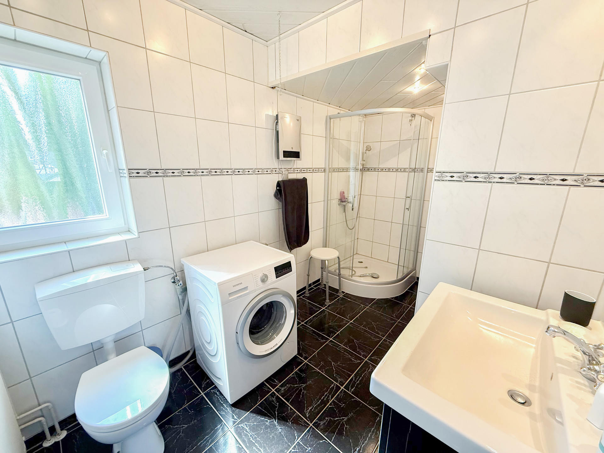 - Badausstattung: Dusche, Badewanne