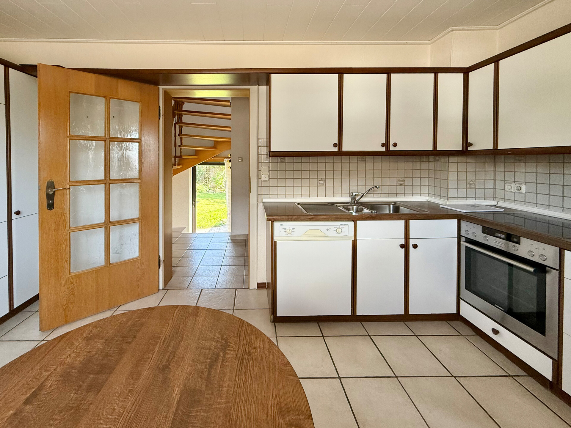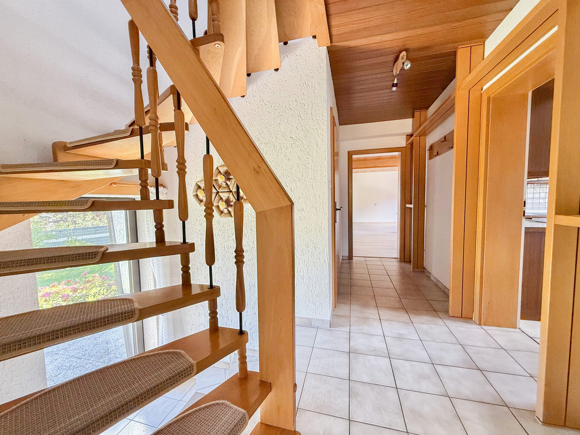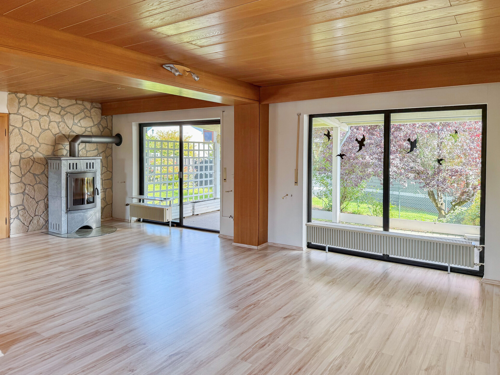 Dieses gepflegte Einfamilienhaus aus ca. 1975 befindet sich auf einem ca. 475 m² großen Grundstück in ruhiger Wohnlage – ideal für Familien, Paare oder alle, die viel Platz zum Leben und Gestalten suchen. Das Haus überzeugt durch: eine solide, massive Bauweise, eine durchdachte Raumaufteilung, seine vollständige Unterkellerung und jede Menge Wohnkomfort! Highlight des Hauses ist der großzügige Wohn- und Essbereich mit Kaminofen, der durch große Fensterflächen lichtdurchflutet und einladend wirkt. Von hier aus gelangen Sie direkt auf die überdachte Terrasse – ein perfekter Ort für entspannte Stunden mit Blick in den gepflegten Garten. Im Dachgeschoss befinden sich die Schlafzimmer. Zwei hintereinanderliegende Räume bieten flexible Nutzungsmöglichkeiten: ob als Elternschlafzimmer mit Ankleide, Kinderzimmer, Home-Office oder gemütlicher Rückzugsort – hier haben Sie Raum für Ihre Ideen! Beide Zimmer verfügen über einen Zugang zur Loggia mit herrlichem Fernblick. Ein zweites Bad im Obergeschoss sorgt für zusätzlichen Komfort. Im Kellergeschoss erwarten Sie: ein praktischer Abstellraum, eine Waschküche, der Heizungsraum und ein vielseitig nutzbarer Hobbyraum. Zusätzlich zur Garage stehen ein Carport mit 2 Stellplätzen, sowie ein weiterer Außenstellplatz zur Verfügung.
