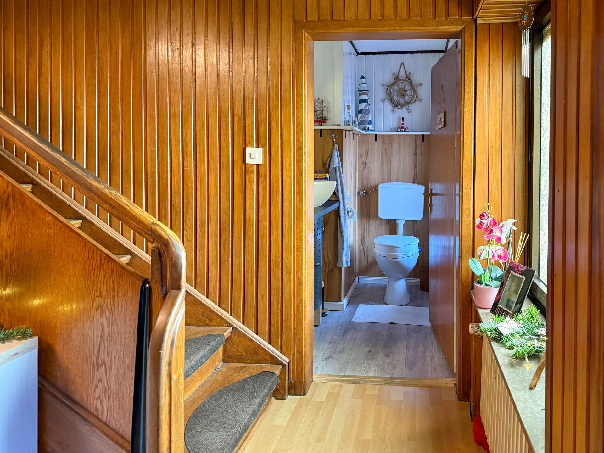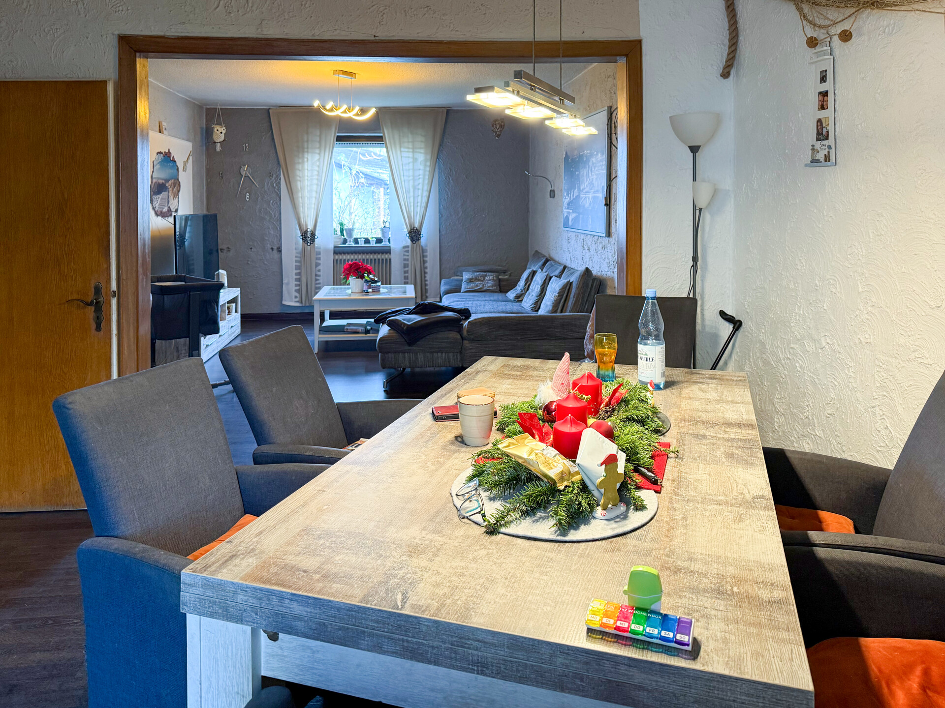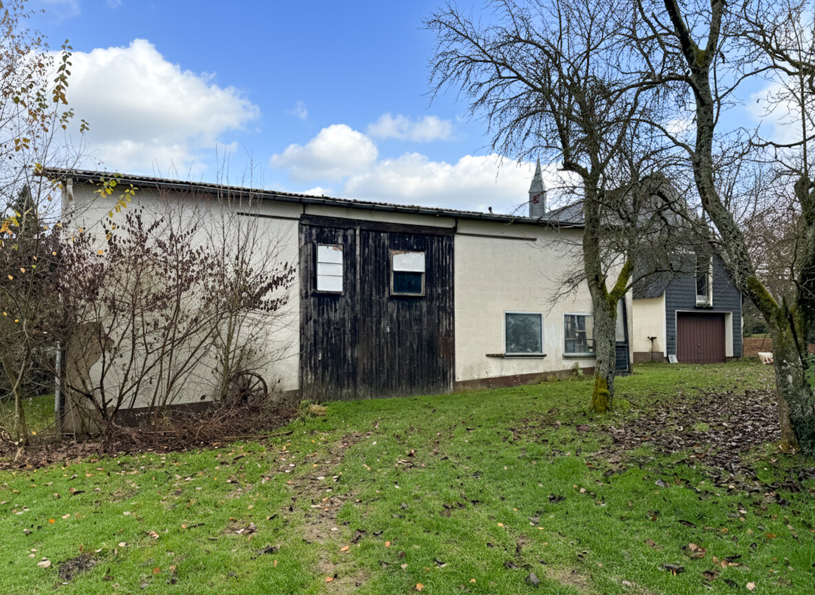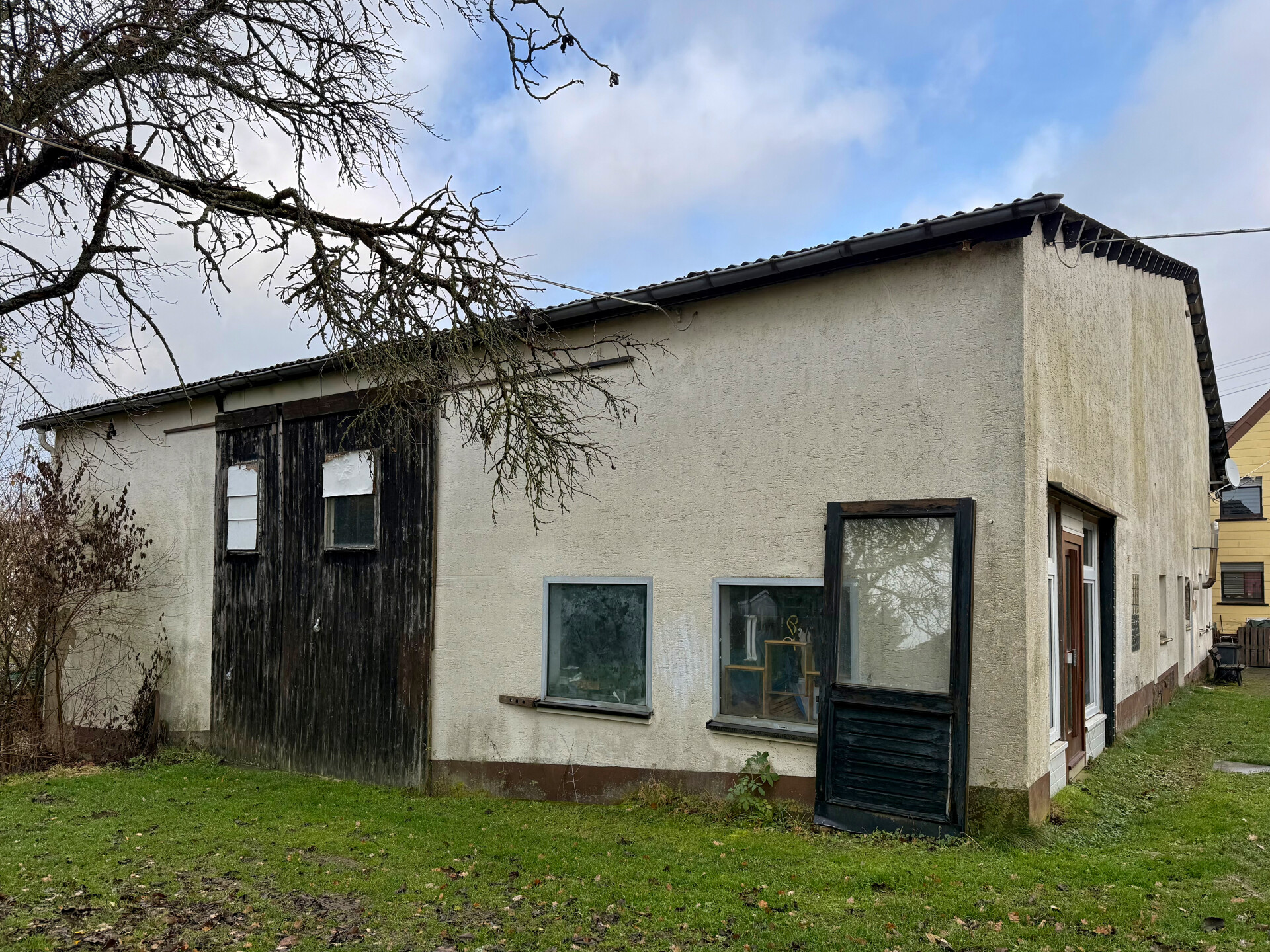Dieses renovierungsbedürftige Einfamilienhaus aus ca. 1950 bietet auf rund 129 m² Wohnfläche und einem weitläufigen Grundstück von ca. 1.500 m² viel Platz. Der zweigeschossige Massivbau überzeugt mit einer guten Raumaufteilung: Im Erdgeschoss befinden sich ein Schlafzimmer, ein großer Wohn- und Essbereich mit Kaminofenanschluss, eine Küche sowie ein Gäste-WC – ideal für ältere Personen oder barrierearme Wohnkonzepte. Im Obergeschoss stehen drei weitere Zimmer und ein Bad bereit. Der Vollkeller mit vier Räumen sorgt für viel Stauraum. Auf dem Grundstück befinden sich außerdem eine große ehemalige Scheune /z.T. vermietet mit drei Teilbereichen sowie ein Garagengebäude, die vielfältige Möglichkeiten für Hobbys, Werkstatt, Lager oder zusätzliche Fahrzeuge bieten. Die großzügige Hofeinfahrt schafft weitere Stellplätze. Das Objekt wird zu Ende Januar 2026 frei.