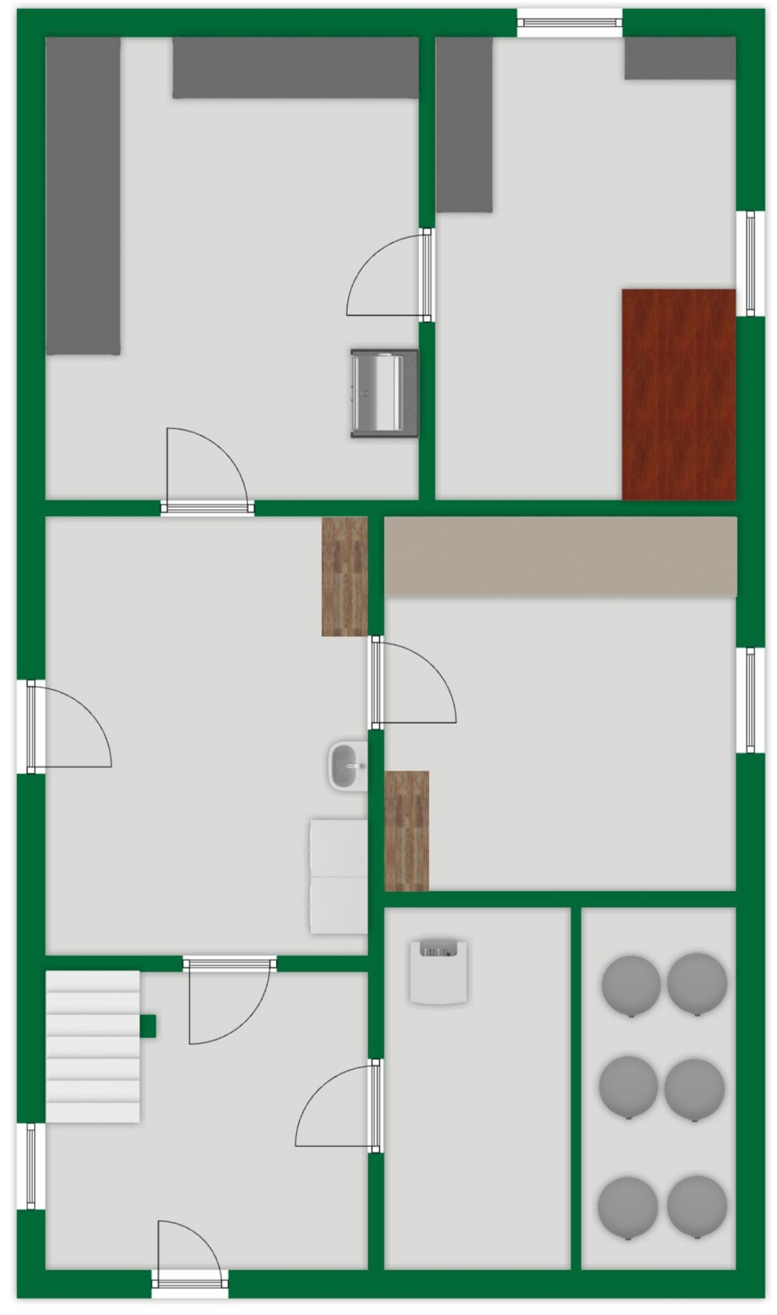 Das Haus ist seit 1991 vermietet. Im Obergeschoss gibt es jedoch einen über eine separate Außentreppe erreichbaren Raum, welcher nicht Teil des Mietgegenstandes ist und aktuell vom Eigentümer als Abstellraum genutzt wird. Die vermietete Fläche beläuft sich somit auf rd. 129 m², wohingegen ein extern zugänglicher Raum mit einer Fläche von 19,99 m² sowie 1,91 m² anteiligen Fläche des Balkons (25% von 7,63 m²) aktuell ungenutzt sind.