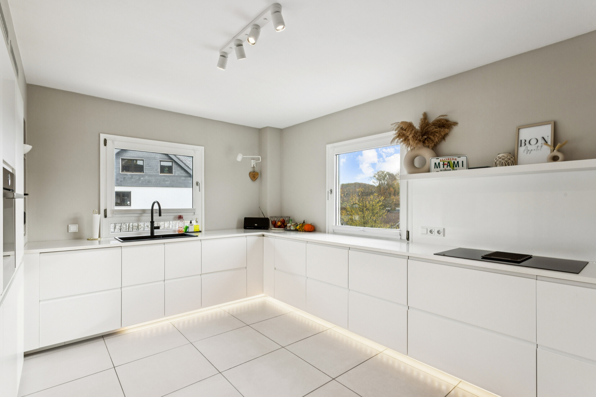 Eine Fußbodenheizung sorgt im gesamten Haus für ein angenehmes Wohnklima, während das integrierte Smart-Home-System – inklusive Philips Hue Beleuchtung und elektrischen Jalousien – bequem per App gesteuert werden kann. Dieses Einfamilienhaus begeistert durch seine hochwertige Ausstattung, seine großzügige Architektur und sein einladendes Wohnambiente. Ein Zuhause, das keine Wünsche offenlässt und in dem sich moderner Wohnkomfort und hoher Lebensstil perfekt vereinen. -