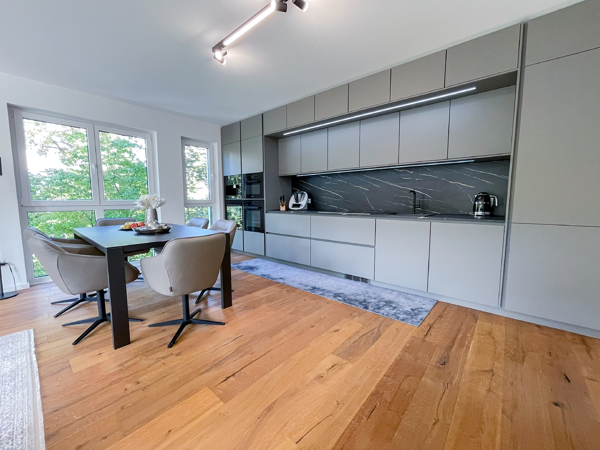 Ein Großteil der stilvollen Möbel sowie die exklusive, maßgefertigte Einbauküche können bei Interesse vom Verkäufer übernommen werden – für einen rundum perfekten Einzug ohne Aufwand.