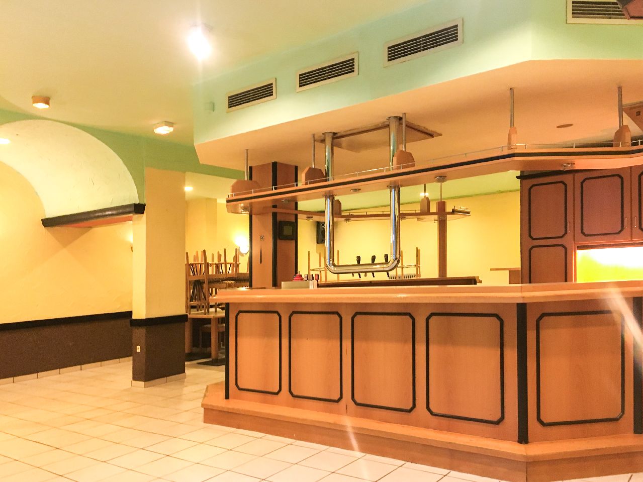 Die gut 118 qm große Fläche verfügt neben einem weiträumigen Schankraum über diverse Lagerflächen, ein Kühlhaus, geschlechterspezifische Toilettenanlagen, sowie eine Thekenanlage mit Kühlschränken und Zapfanlage.
