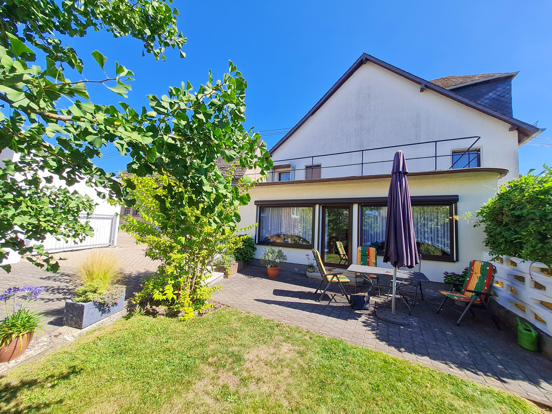Das ca. 864 m² große Grundstück ist pflegeleicht gestaltet und komplett eingefriedet. Über eine kleine Zufahrt gelangen Sie bequem in den geschützten Innenhof und auf das gesamte Anwesen. Eine Garage mit elektrischem Tor sowie zwei weitere PKW-Stellplätze stehen zur Verfügung.