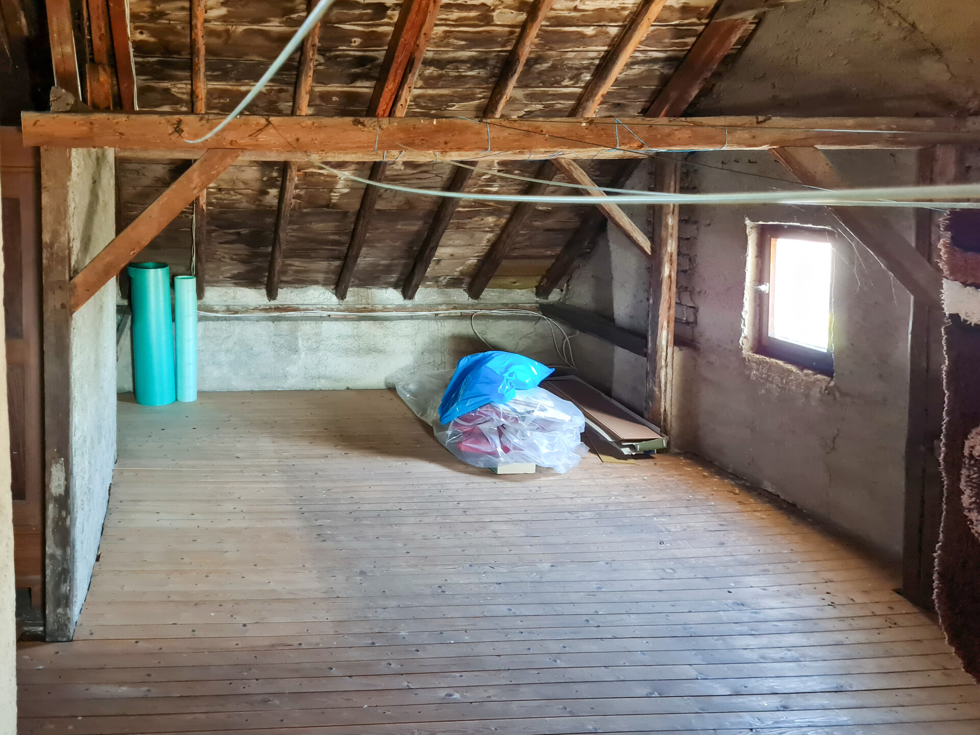 Zur Immobilie gehört auch eine großzügige Scheune aus dem Jahr ca. 1938 mit einer Grundfläche von etwa 10 x 13 Metern. Sie verfügt über einen hohen Hauptraum, einen zusätzlichen Raum sowie einen ehemaligen Stallbereich – vielseitig nutzbar, z. B. als Werkstatt, Lager oder Hobbyraum. Das Wohnhaus bietet rund 180 m² Wohnfläche und eignet sich dank seiner durchdachten Raumaufteilung ideal für eine oder auch zwei Parteien.