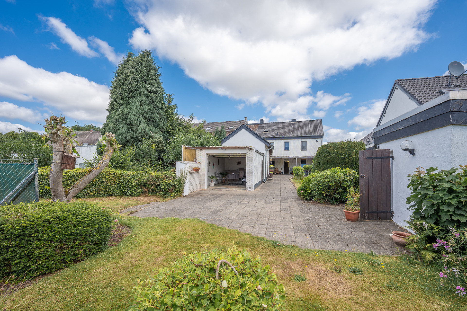 Das Haus steht auf einem großzügigen 694 m² großen Grundstück, das neben Freiflächen auch praktische Abstellräume im Außenbereich bereithält. Für zusätzlichen Stauraum sorgt die Teilunterkellerung, die bequem über die überdachte Terrasse zugänglich ist – eine durchdachte Lösung für Alltag und Vermietung.