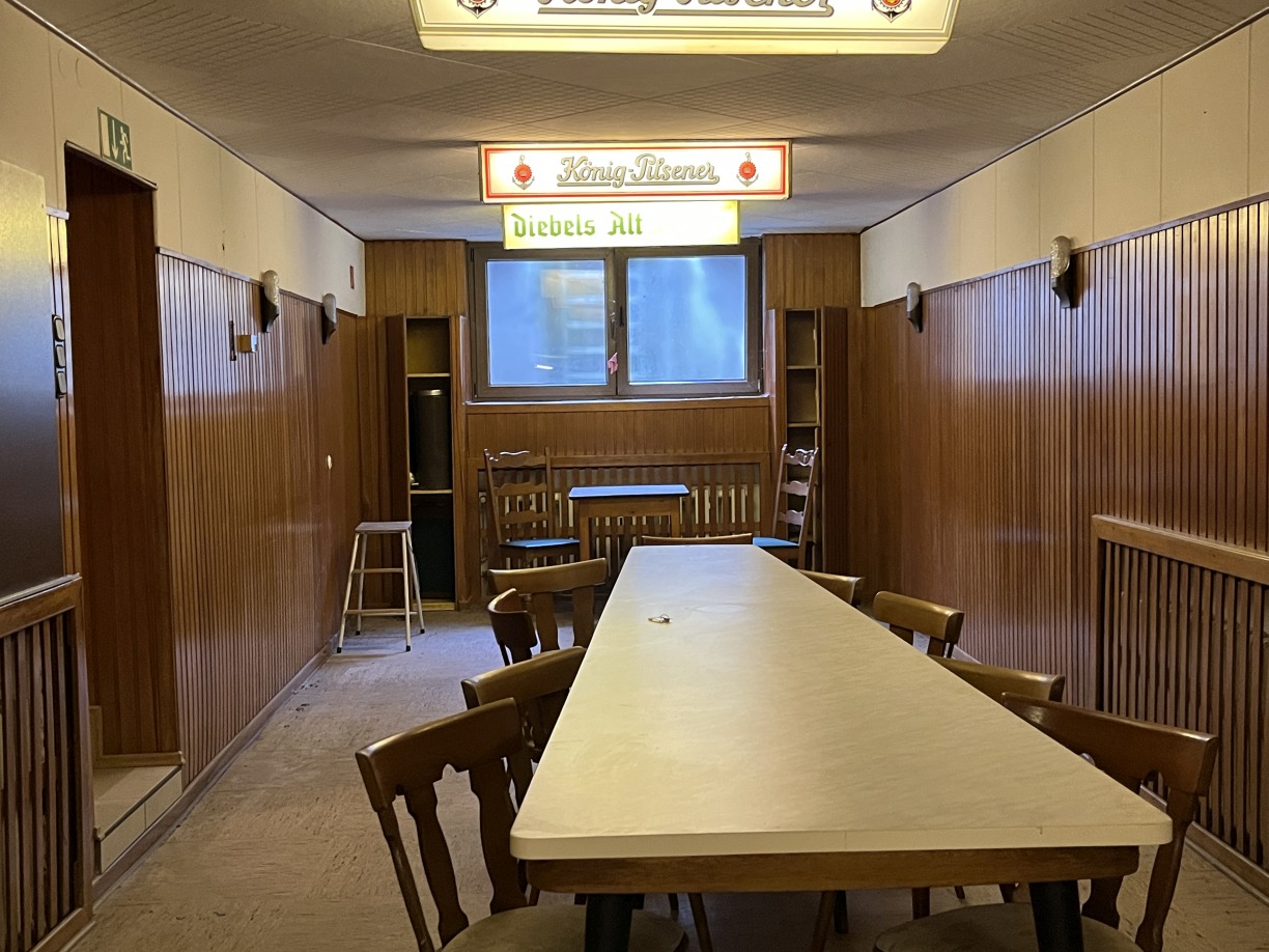 Der einseitig angebaute Baukörper verfügt über ein ausgebautes Satteldach und einen zweigeschossigen Anbau mit Flachdach und ist voll unterkellert. Im Erdgeschoss befindet sich die ehemalige Gaststätte (ca. 86 m²) mit großem Gastraum, Küche, getrennten WCs und direktem Zugang zu Terrasse und Garten. Das Obergeschoss bietet eine helle 3-Zimmer-Wohnung (ca. 90 m2) mit Balkon, Wohn- und Essbereich, Schlafzimmer, Kinder- oder Arbeitszimmer, Küche und Bad. Im Keller lädt eine Kegelbahn zur Freizeitgestaltung ein. Zusätzlich gibt es einen massiv errichteten Abstellschuppen mit zwei Räumen und Toiletten, einen Carport für mehrere Fahrzeuge sowie weitere Stellplätze vor dem Haus. Ideal für Wohnen, Arbeiten oder Freizeit, ein Objekt mit vielfältigen Möglichkeiten. -