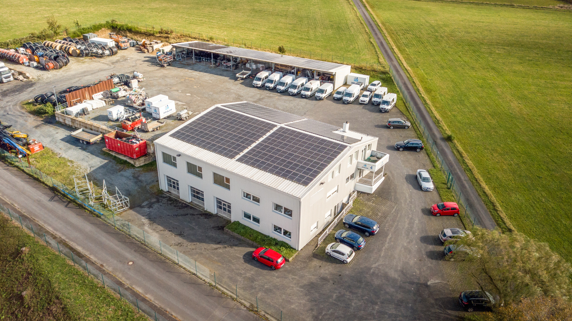 Großer Gewerbekomplex mit Bürogebäude, Werkstatt-/Halle, Freifläche und PV-Anlage!