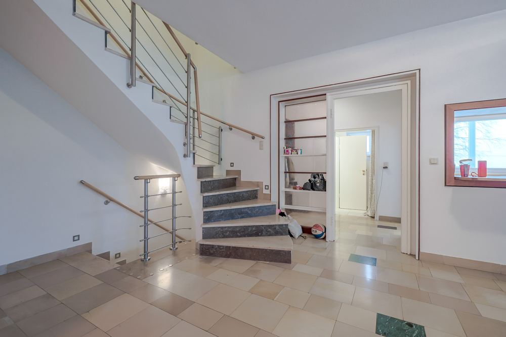 Die Wohnfläche beträgt ca. 217 m² und wird ergänzt durch ca. 151 m² Nutzfläche. Zur Nutzfläche zählt das gesamte Untergeschoss, welches zur Gartenseite hin ebenerdig liegt und in Wohnraumqualität ausgebaut ist, jedoch nicht zu Wohnzwecken genehmigt wurde. Aktuell verfügt das Haus über fünf Zimmer, die mit geringem baulichem Aufwand auf sechs Zimmer erweitert werden können.