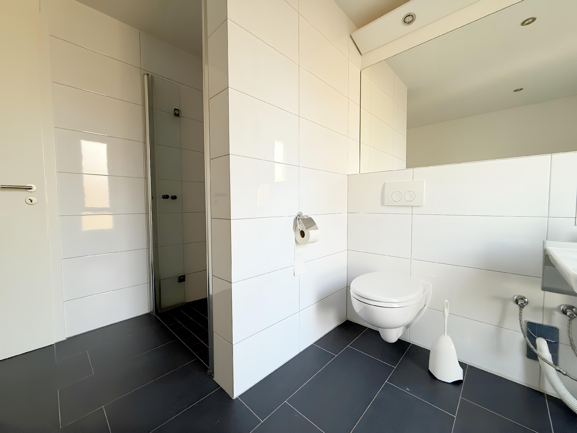 Das stilvolle Tageslichtbad punktet mit bodengleicher Dusche, großformatigen Fliesen und einem wertigen Gesamteindruck. Ein separates Gäste-WC steigert zusätzlich den Wohnkomfort. Der große, überdachte Balkon erweitert den Wohnraum nach außen und bietet einen schönen Blick auf die gepflegte, gemeinschaftlich genutzte Grünanlage im Innenhof – ein seltenes Highlight im urbanen Umfeld.