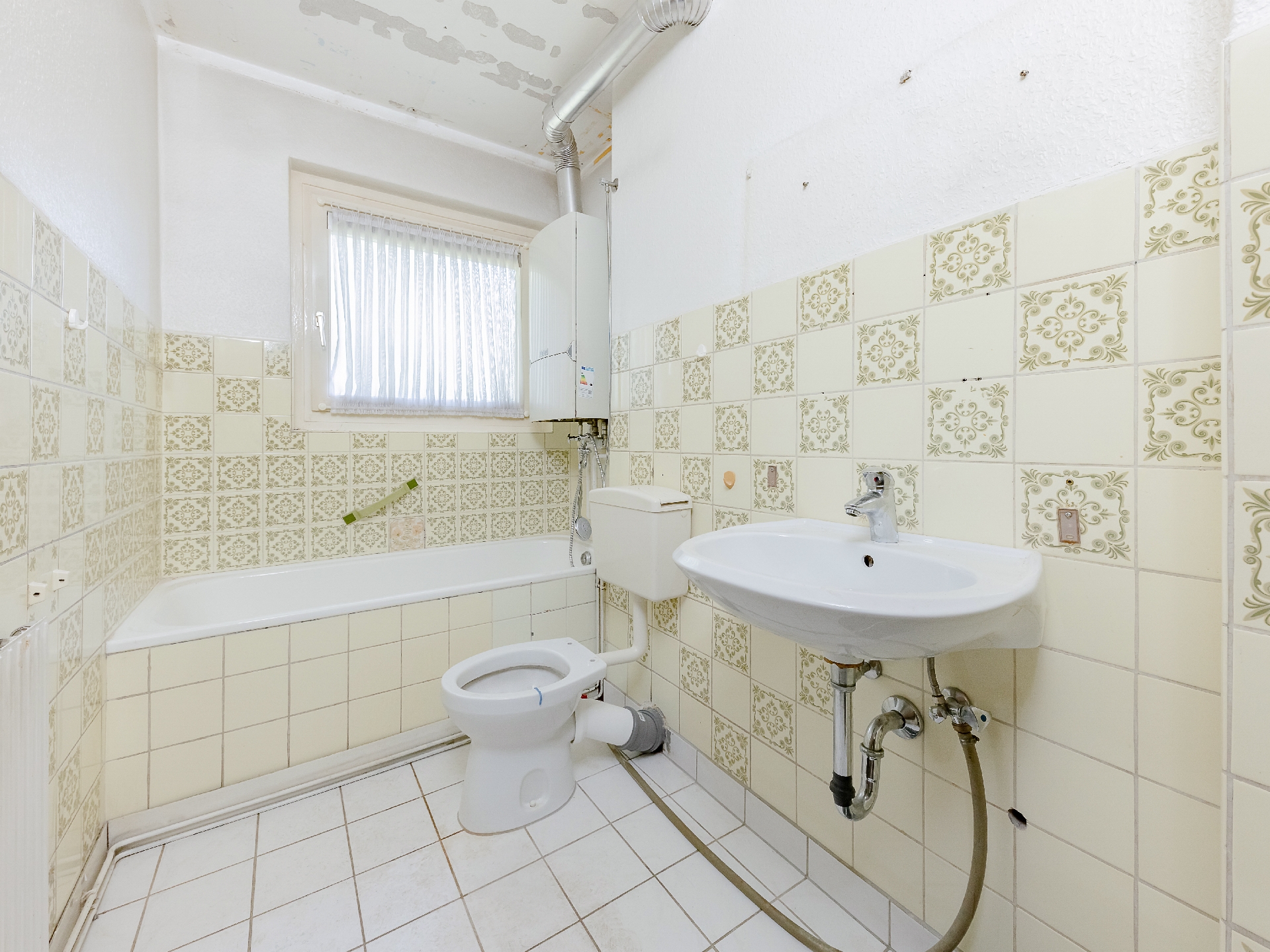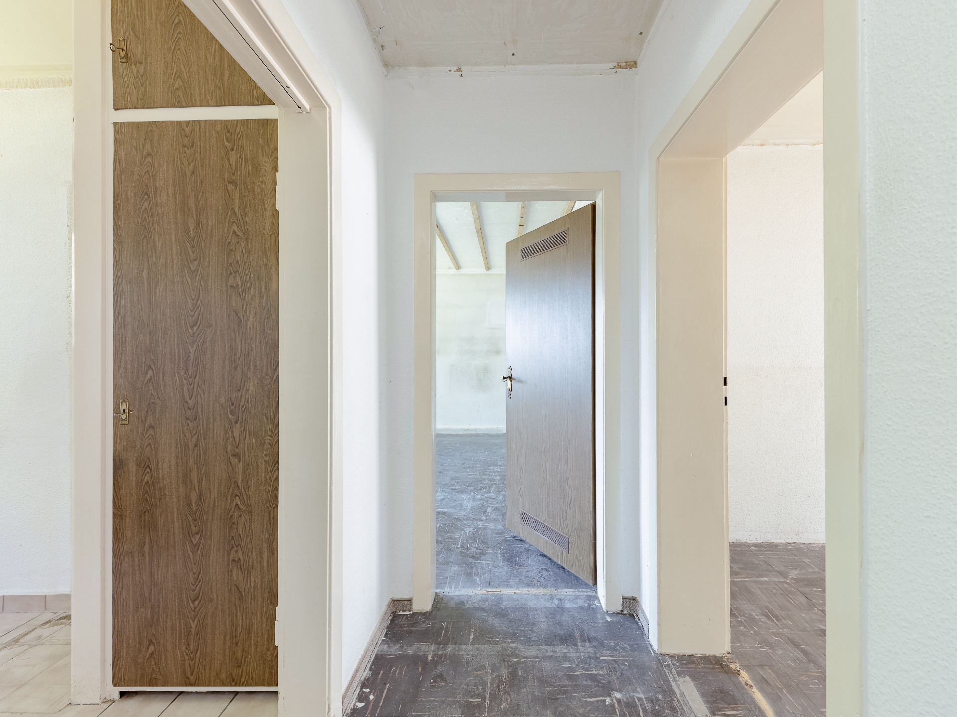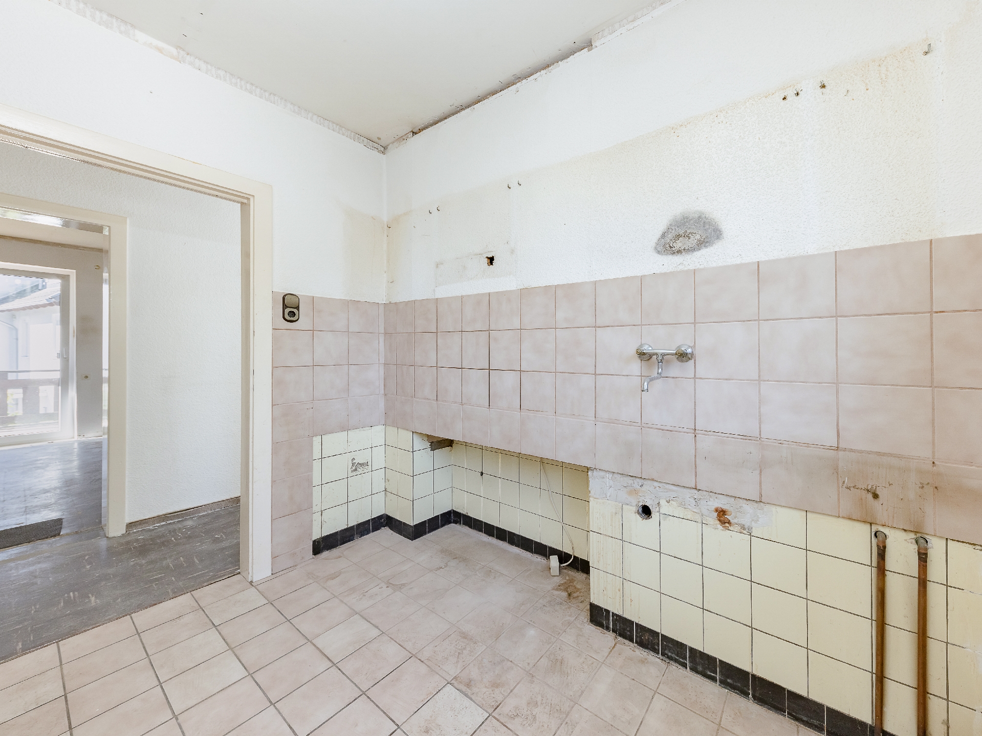 * Böden: Diele und Wohnräume: verlegefähig, ohne Belag / Küche und Badezimmer: Fliesen