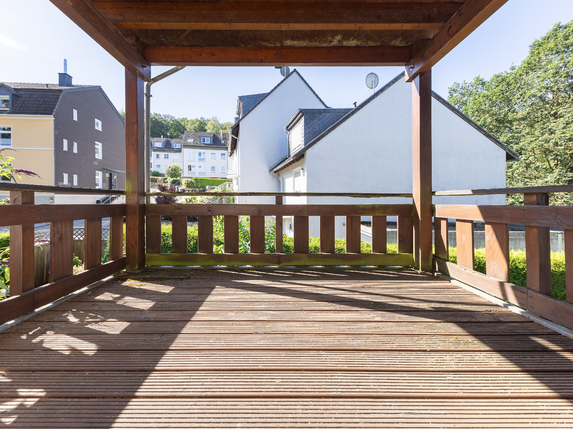 • Die Eigentumswohnung befindet sich in einer versteckten Privatstraße in ruhiger, naturnaher und dennoch zentraler Lage. Da es sich zudem um eine Sackgasse handelt, ist nur wenig Autoverkehr vorhanden. Insbesondere für Spaziergänge ist die grüne Umgebung wunderbar, von der Haustür aus gelangt man schnell zum Waldgebiet des Schwelmer Ehrenbergs. Die Innenstadt Schwelms ist in kurzer Fahrzeit erreicht und bietet neben der historischen Altstadt auch verschiedene Geschäfte, Restaurants und Cafés. Ideal kann die Strecke auch mit den öffentlichen Verkehrsmitteln absolviert werden, denn eine Bushaltestelle ist fußläufig anzutreffen und führt auch darüber hinaus auf direktem Weg zum Schwelmer Bahnhof. Die Schulen in der Umgebung können so ebenfalls erreicht werden. Die Autobahnanbindung zur A1 und somit auch zur A43 und A46 ist mit einer angenehmen Fahrzeit verbunden.