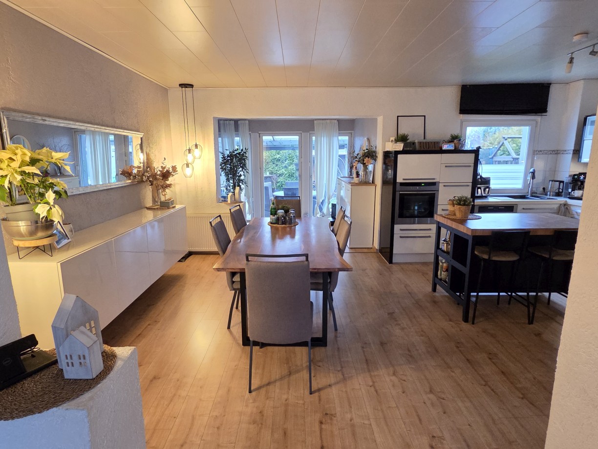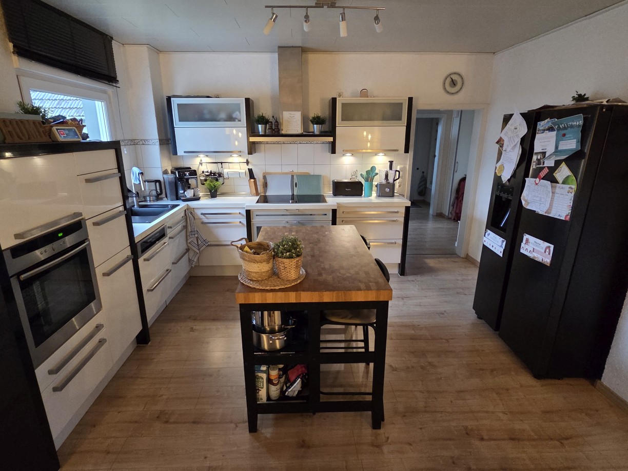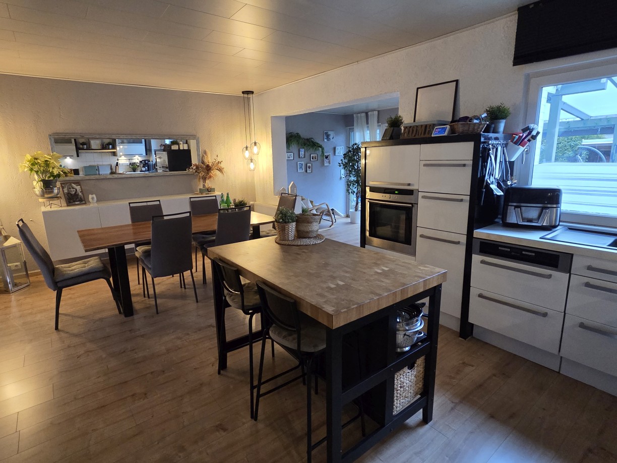 • Einfamilienhaus aus 1955, von innen komplett modernisiert, großzügige Raumaufteilung mit satten 198 m² Wohnfläche zzgl. ca. 76 m² Nutzfläche im Untergeschoss, Massivbauweise, 1 1/2-geschossig mit zusätzlich ausgebautem Spitzboden. Insgesamt 5 Schlafräume plus Gäste-Zimmer im UG, großzügige, offene Küche und Wohnbereich mit insgesamt ca. 61 m² – EBK bereits im Kaufpreis enthalten.