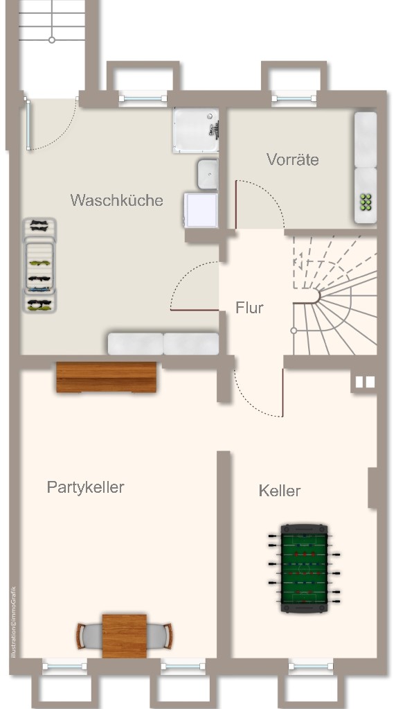 Der Keller ist klassisch und funktional gestaltet.