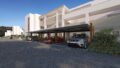 Zu allen Apartments gehört ein eigener Parkplatz im Außenbereich, beschattet durch eine Pergola über dem gesamten Parkbereich.
