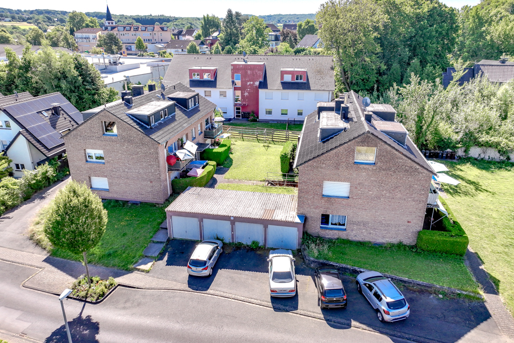 Die hier angebotene Immobilie umfasst zwei Mehrfamilienhäuser mit jeweils sechs Wohnungen sowie acht Garagen in zentraler Lage von Königswinter-Oberpleis.