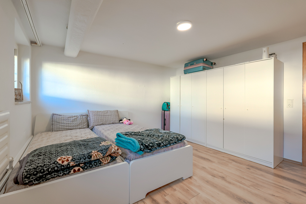 Das Untergeschoss verfügt über drei beheizte Hobbyräume, die vielseitig nutzbar sind – etwa als Gästezimmer, Büro, Werkstatt oder Fitnessbereich. Zudem stehen hier eine Waschküche, ein Badezimmer mit Dusche, ein separates WC sowie der Heizungskeller zur Verfügung.