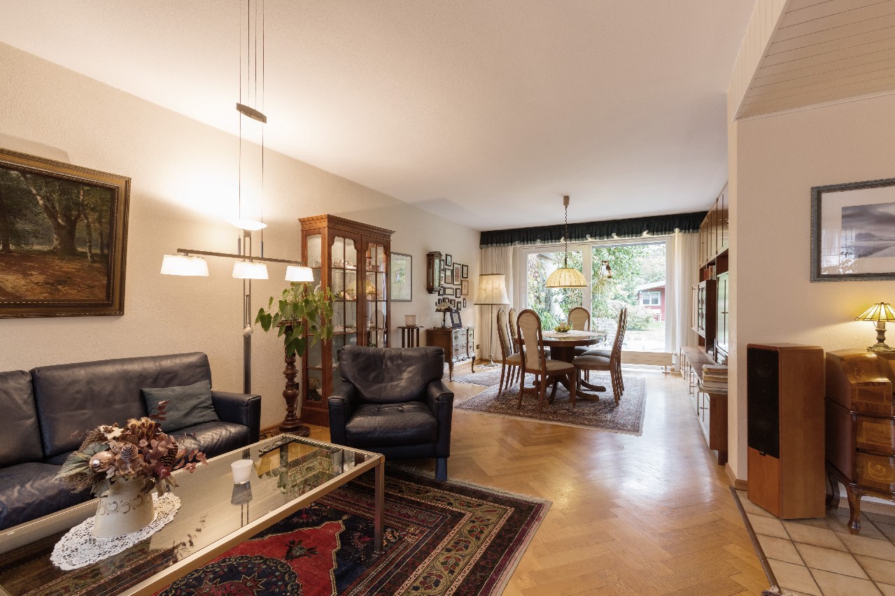 Dieses solide gebaute Zweifamilienhaus aus dem Jahr 1961 bietet mit seiner großzügigen Aufteilung und der weitläufigen Außenanlage ideale Bedingungen für ein Familienleben in einem Mehrgenerationenhaus.