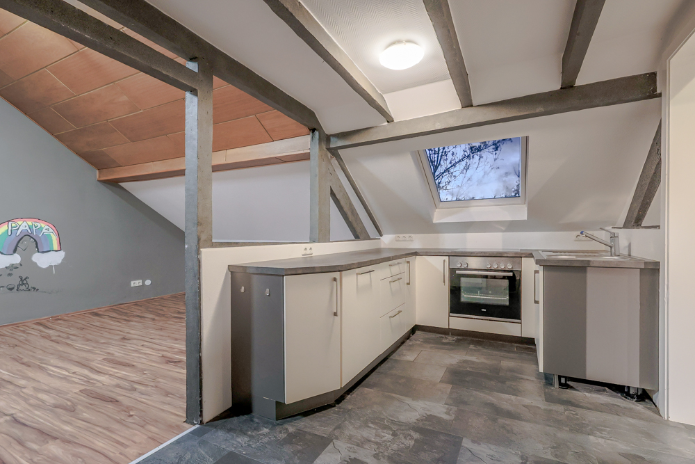 Ebenfalls im Obergeschoss liegt eine funktionale 2-Zimmer-Wohnung mit Küche und Badezimmer. Auch diese Einheit ist langfristig vermietet (seit 2010) und bietet Mietanpassungspotenzial.Dachgeschoss