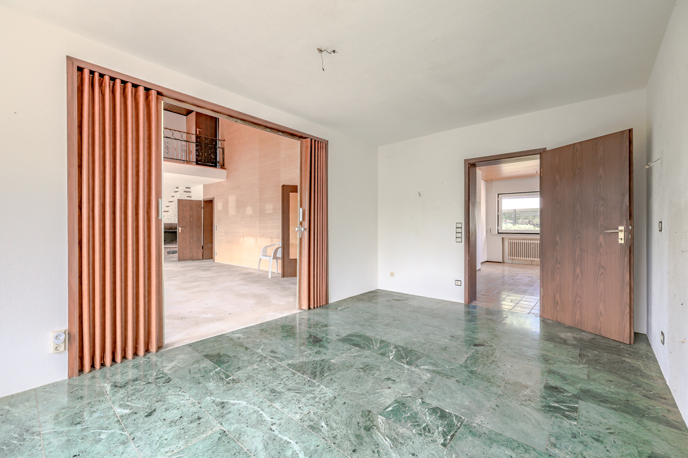 Besonders hervorzuheben ist die außergewöhnliche Aufteilung: Neben Erdgeschoss, Dachgeschoss und Untergeschoss verfügt das Gebäude über ein zusätzliches Tiefgeschoss, das ursprünglich als Bunker vorgesehen war. Durch die Kombination aus großzügigen Wohnbereichen, Nebenräumen und individuellen Ausbaumöglichkeiten eignet sich die Immobilie perfekt für Familien mit großem Platzbedarf oder Mehrgenerationenkonzepte.