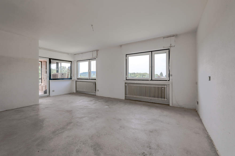 Zugang zu Balkon mit Blick ins Siebengebirge sowie zur großen Dachterrasse.