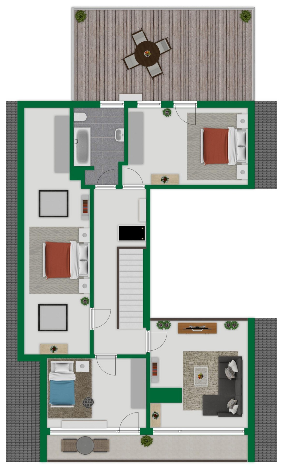 Die Grundstücksgröße von 1.151 m² bietet zudem viel Freiraum im Außenbereich – sei es auf den Terrassen, Balkonen oder im großen Garten.