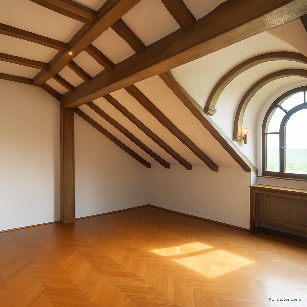 Das Dachgeschoss stellt weitere großzügige Flächen zur Verfügung, die sich hervorragend als interne Büros, Mitarbeiterbereiche, Archivräume oder zusätzliche Behandlungs- bzw. Arbeitsräume nutzen lassen. Die ruhige Lage und der Blick ins Grüne schaffen ein angenehmes Arbeitsumfeld, das insbesondere für konzentrierte Tätigkeiten von Vorteil ist.