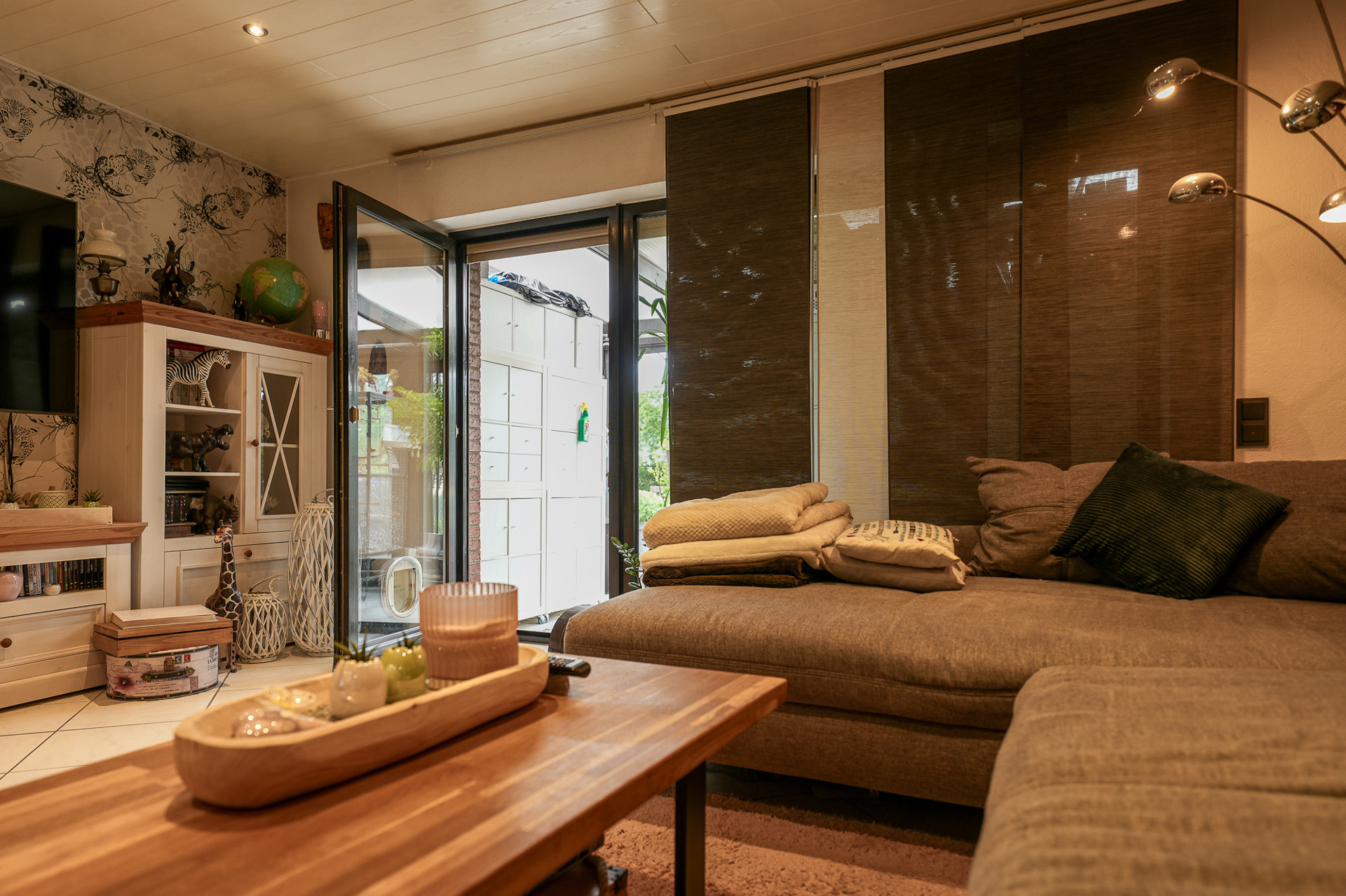 Ein echtes Highlight – im wahrsten Sinne des Wortes – ist der lichtdurchflutete Wintergarten. Er verbindet Innen und Außen, erweitert den Wohnraum und wird im Handumdrehen zum Lieblingsplatz: für den ersten Kaffee am Morgen, den Blick ins Grüne oder ein gutes Buch am Sonntagnachmittag. Von hier gelangen Sie direkt auf die Terrasse – ein stilles Versprechen von Sommerabenden, Morgensonne und Leben unter freiem Himmel.
