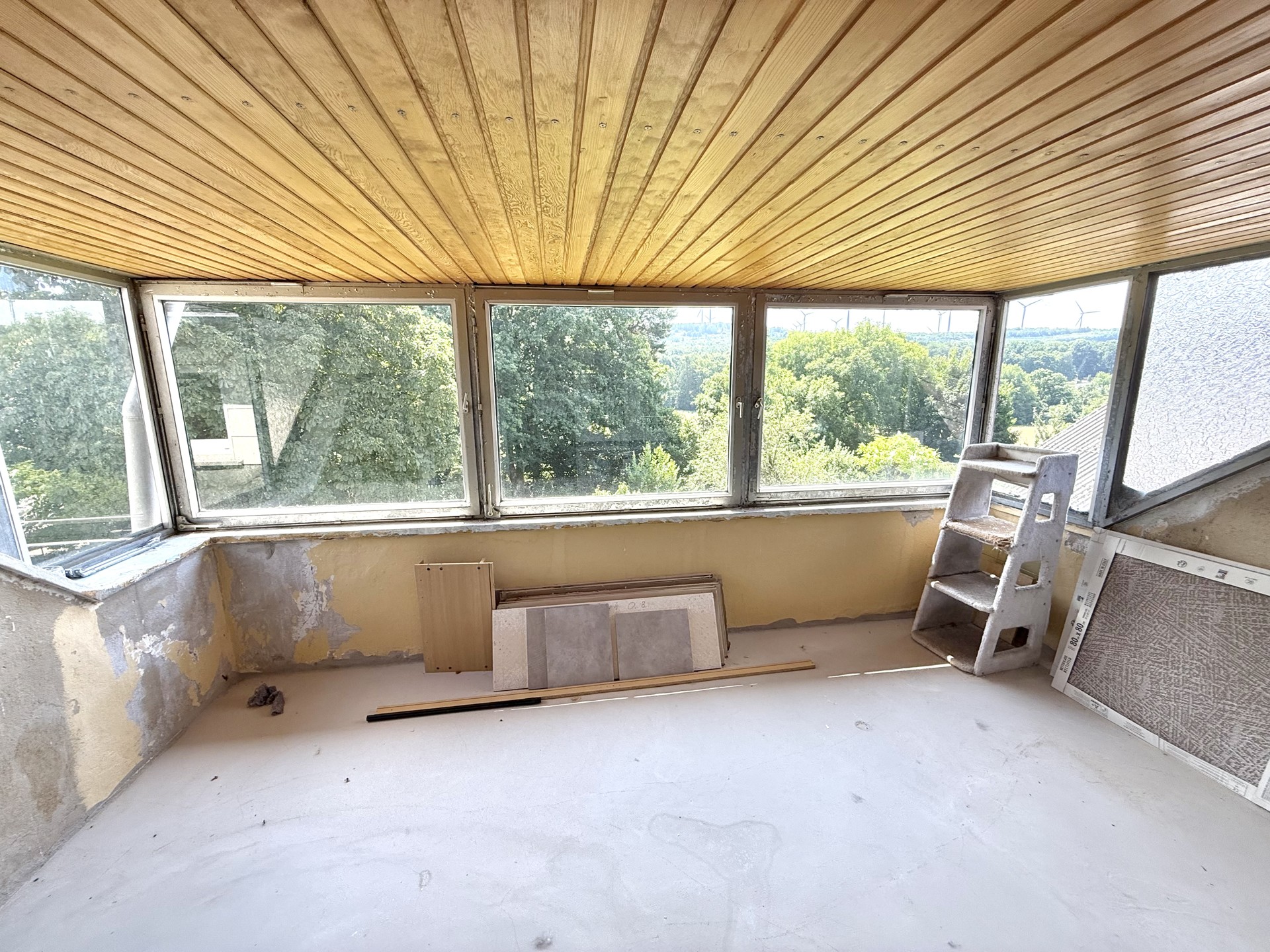 Fenster: Kunststofffenster mit Isolierverglasung (2005/2017); Wintergarten mit einfach verglasten Holzfenstern