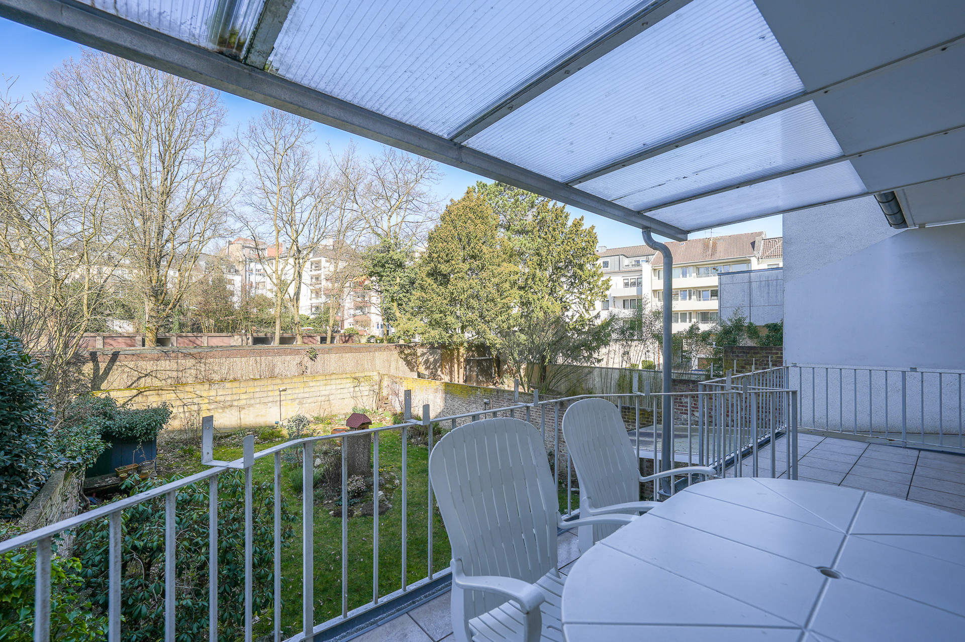 Trotz ihrer zentralen Lage bietet die Wohnung eine Oase der Ruhe. Der geräumige Balkon lädt dazu ein, Momente der Entspannung zu genießen und den Blick über eine wunderschöne, grüne Landschaft schweifen zu lassen. Hier entfaltet sich eine Szenerie voller natürlicher Schönheit: Erleben Sie die lebendige Tierwelt mit Vögeln und Eichhörnchen, die geschickt durch die majestätischen Baumkronen huschen. Diese malerische Ruhezone verspricht eine harmonische Balance zwischen erholsamer Zurückgezogenheit und der dynamischen Energie des städtischen Lebens, ein wahrhaft einzigartiger Lebensraum inmitten der Stadt.