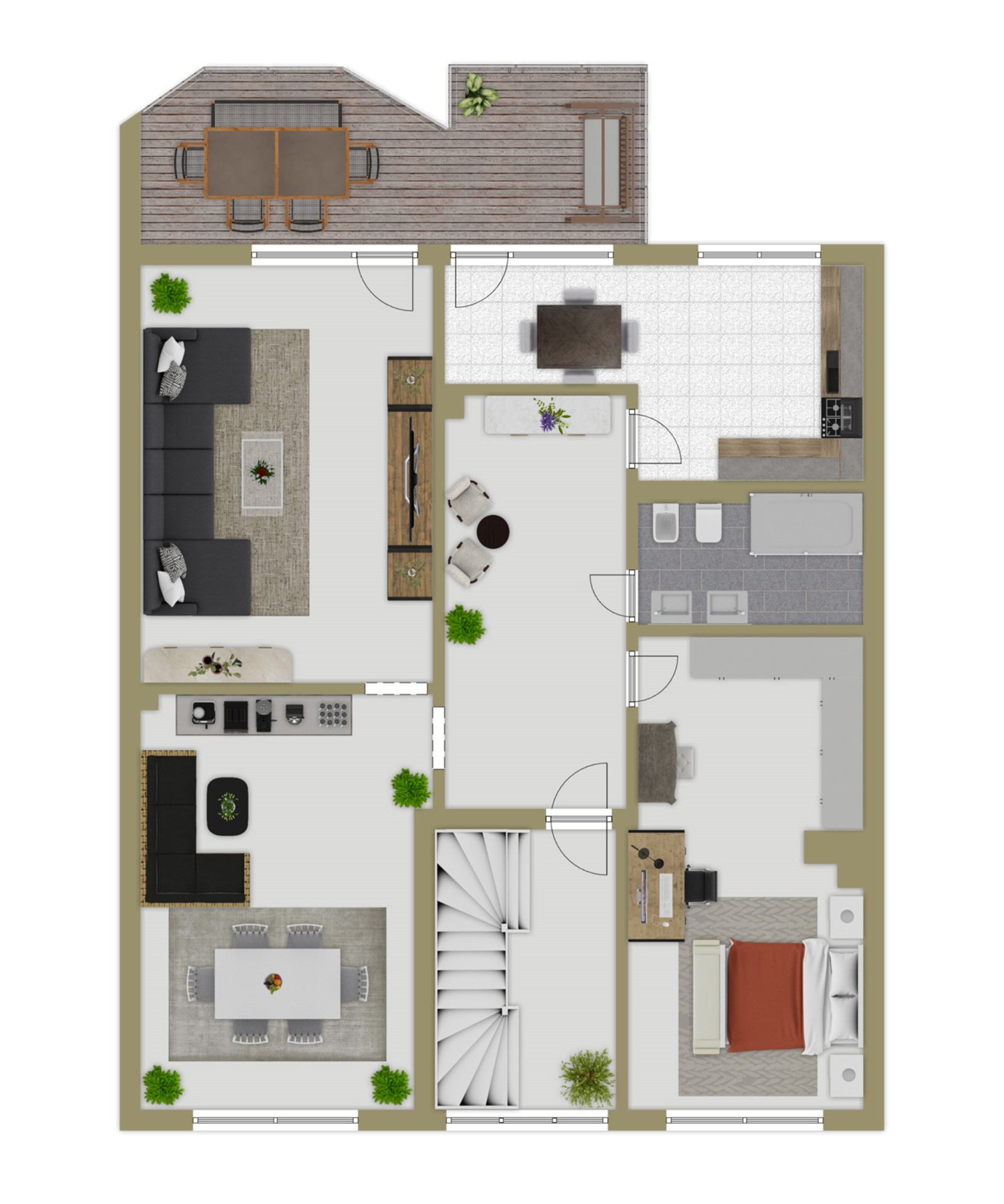 Durch die einfache Ergänzung einer Tür im Flurbereich lässt sich der aktuell offen gestaltete Wohn-Essbereich in ein separates, vollwertiges Zimmer umwandeln. So entsteht mit minimalem Aufwand zusätzlicher Raum – ideal als Home-Office, Gästezimmer oder persönlicher Rückzugsort. Eine clevere Möglichkeit, den Wohnwert dieser Immobilie spürbar zu steigern.