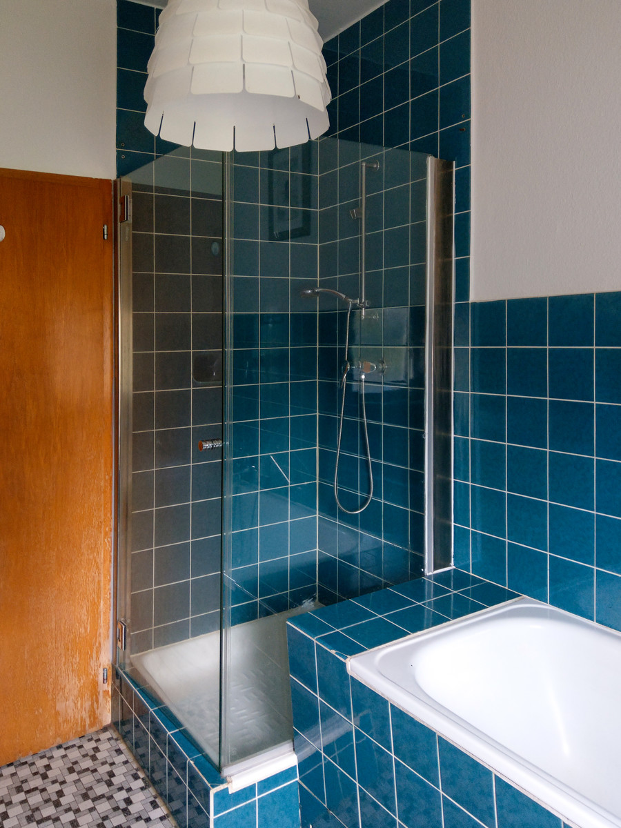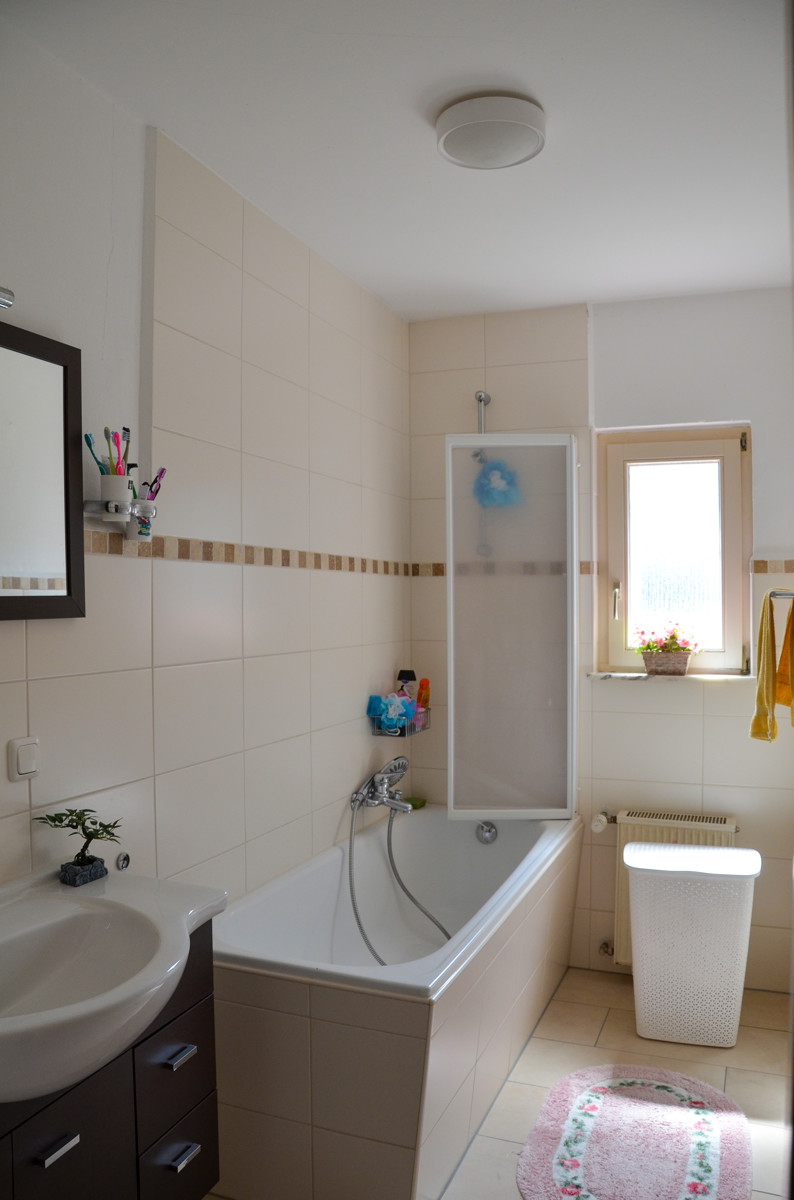 Als Bodenbelag wurden Fliesen und Vinyl gewählt. Das Satteldach ist mit Schiefern versehen.