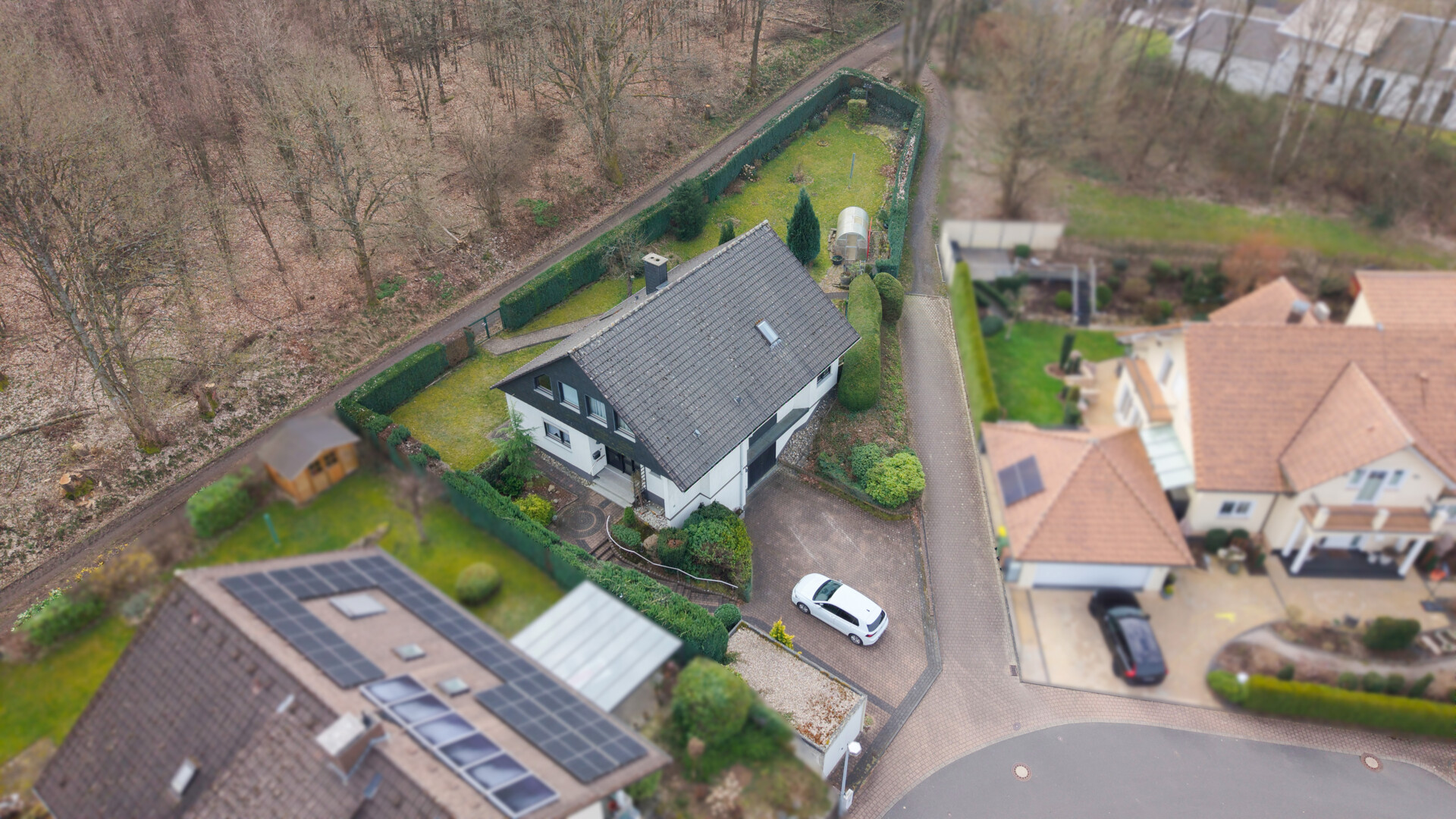 Dieses gepflegte Einfamilienhaus aus dem Jahr 1986 bietet mit rund 160 m² Wohnfläche auf einem ca. 868 m² großen Grundstück vielseitige Möglichkeiten. Es handelt sich um ein Fingerhut-Fertighaus mit durchdachter Aufteilung und der Option, das DG als Einliegerwohnung zu nutzen. Die Lage in einem verkehrsberuhigten Bereich ist besonders attraktiv für Familien. Direkt angrenzend an den Waldrand genießen Sie hier Ruhe und ein angenehmes Wohnumfeld. Das EG ist altersgerecht gestaltet und überzeugt durch eine schöne, offene Raumaufteilung. Küche und Essbereich gehen harmonisch ineinander über und öffnen sich zum Wohnzimmer mit Kachelofen. Eine große Fensterfront, zur Südterrasse ausgerichtet, sorgt für viel Tageslicht. Ergänzt wird diese Ebene durch ein Gäste-WC und ein Schlafzimmer mit Bad – ideal für komfortables Wohnen auch im Alter. Im DG stehen zwei Schlafzimmer, ein Bad sowie eine Wohnküche zur Verfügung. Dieser Bereich eignet sich hervorragend für größere Kinder, Gäste oder als separater Wohnraum. Vom Balkon aus haben Sie einen tollen Blick auf das Grundstück. Das Haus ist massiv, vollunterkellert und bietet reichlich Platz für Hobby oder Werkstatt. Ein Gewächshaus, eine Einzelgarage sowie 3–4 Stellplätze runden das Angebot ab.