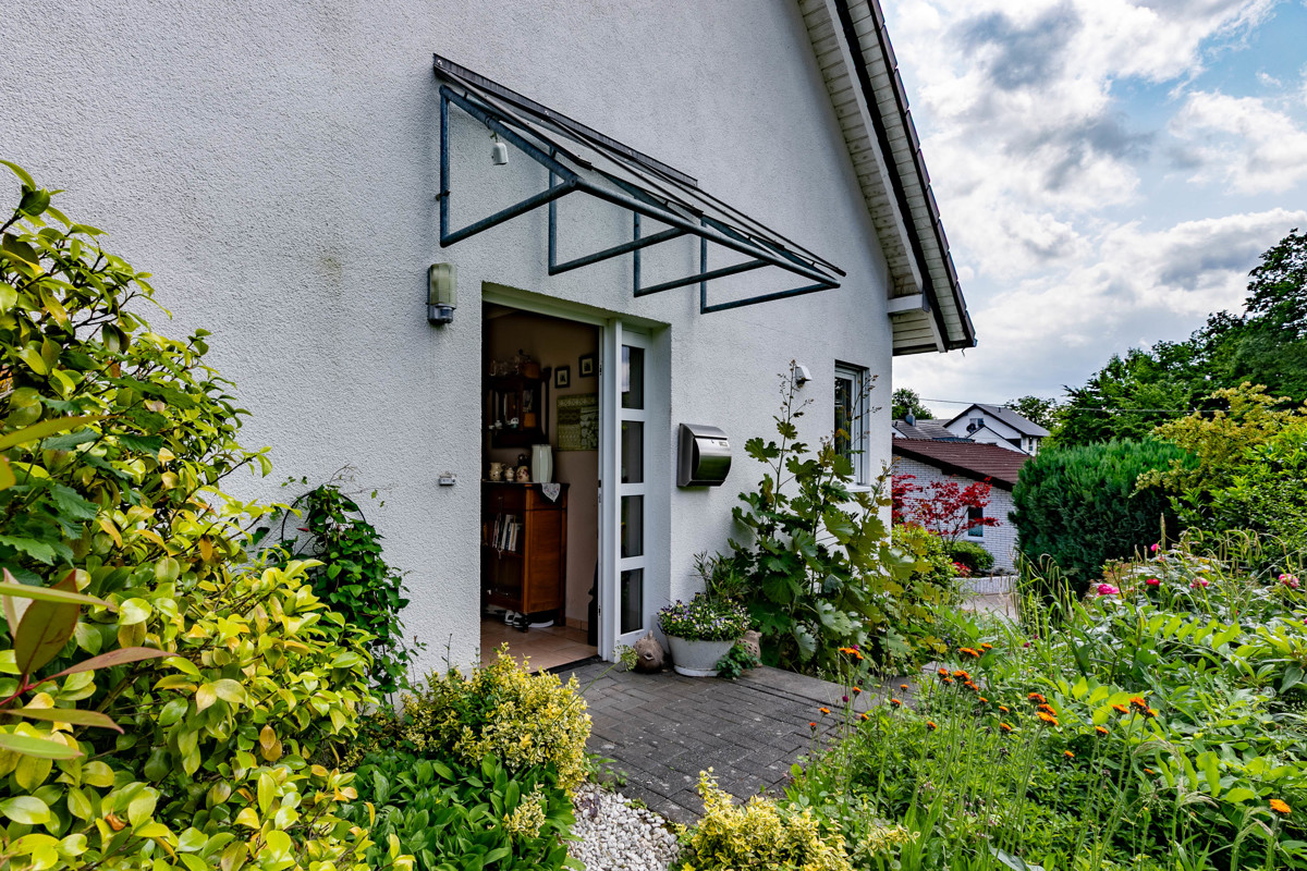 Aufgrund ihrer Größe bietet die äußerst dekorativ angelegte Terrasse mit Pergola Platz für die ganze Familie, ohne dass es eng wird. Der angrenzende Garten ist pflegeleicht angelegt worden und bietet aufgrund seitlicher Sichtschutzwände und üppiger Bepflanzung uneingeschränkten Gartengenuss. Hier sitzt man ungestört vor den Blicken der Nachbarn.