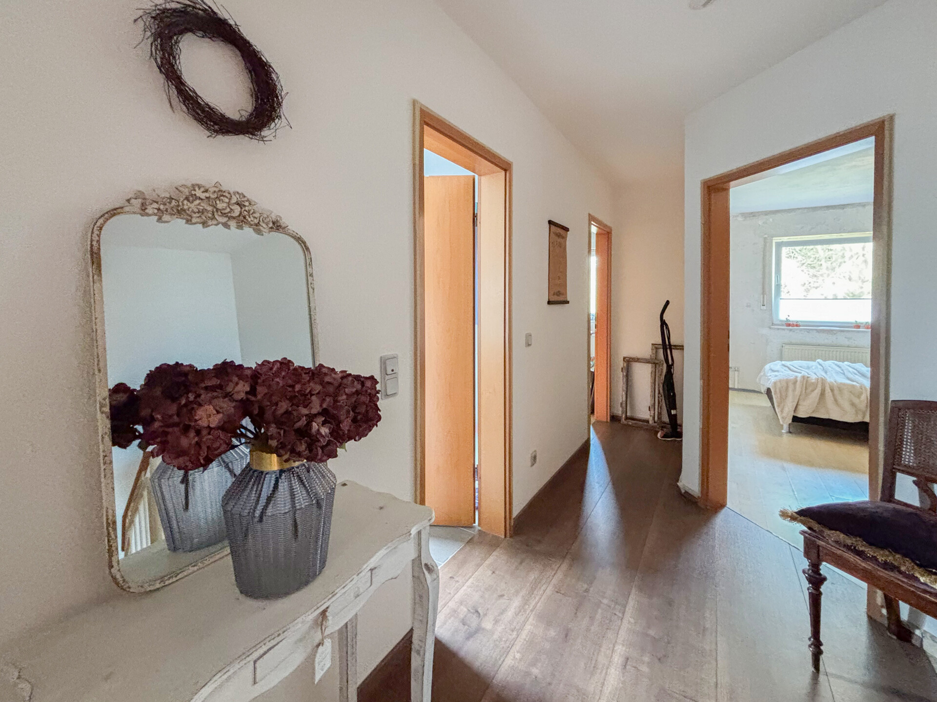 2014 Kompletterneuerung Bad oben + Fußbodenheizung, neuer Laminatboden/ Dez. 2024 neue Elektrogeräte EBK/ 2025 Feinputz in den Wohnräumen, Laminatboden im SZ, Sanierung HWR