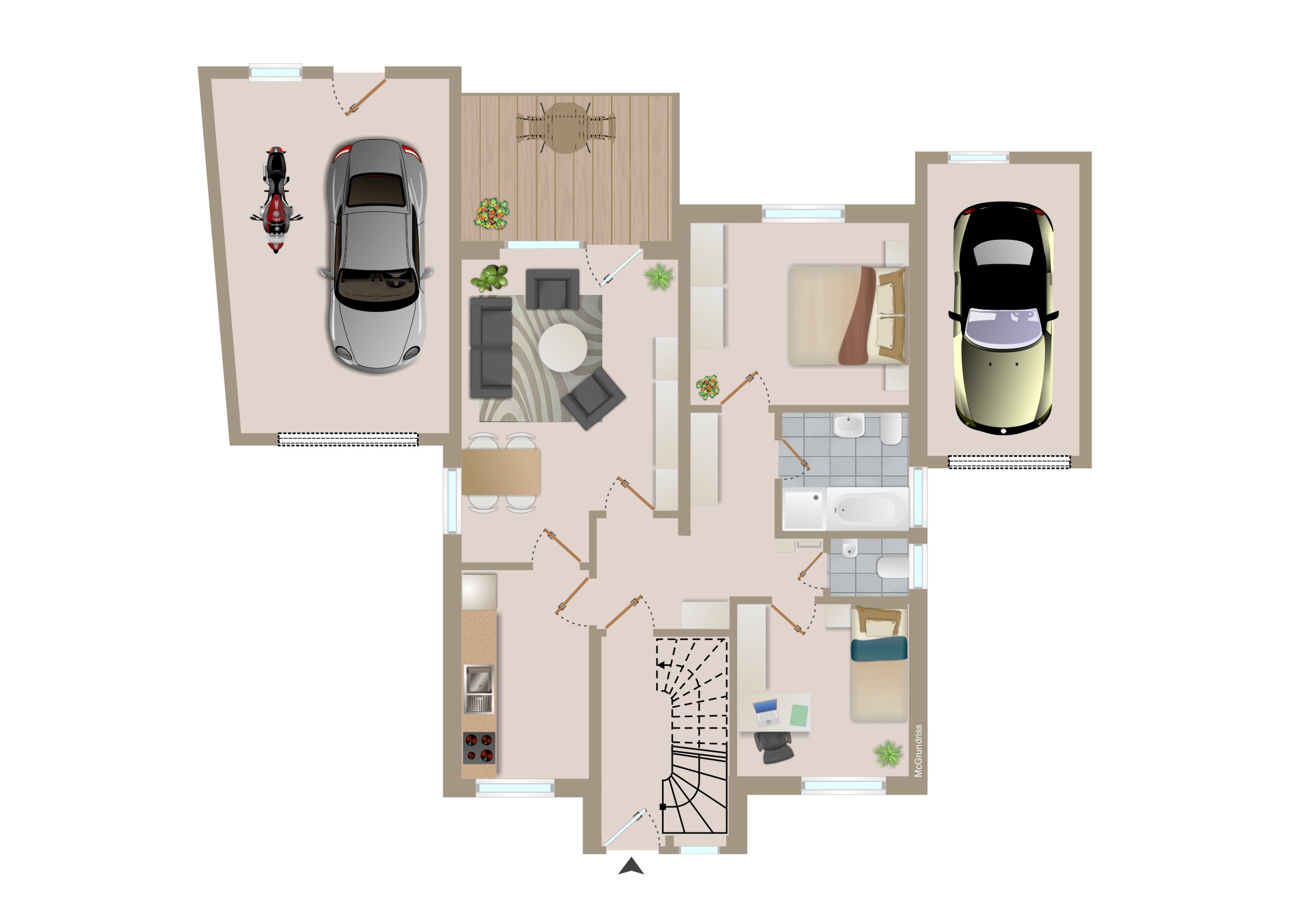 Die Gesamtwohnfläche des Hauses beträgt großzügige 150 m², aufgeteilt in zwei separate Wohnungen – eine im Erdgeschoss und eine im Obergeschoss. Die Erdgeschosswohnung umfasst 3 geräumige Zimmer auf etwa 75 m² und besticht durch eine angenehme Terrasse sowie einen idyllischen Garten. Hier können Mieter das Leben im Freien in vollen Zügen genießen und die warmen Sonnenstrahlen in privater Atmosphäre erleben.
