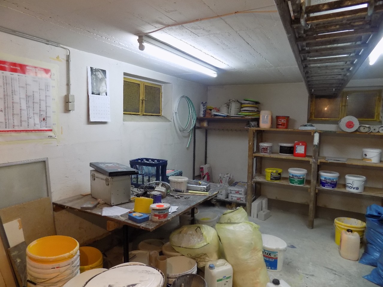• Bei dem hier angebotenen Teileigentum im Untergeschoss eines 7 Familienhauses, handelt es sich um eine Lagerfläche mit mehreren Räumen und einem kleinen Büro sowie zwei Stellplätze. Die ehemaligen Kellerräume wurden umgenutzt und sind seit 2000 an einen Malerbetrieb vermietet. Die aktuelle Kaltmiete beträgt 4.800 EUR p.a. zzgl. Betriebskosten (Müllgebühren, Wasser, Grundsteuer). Der Mietvertrag hat sich Ende Juli 2025 um weitere fünf Jahre verlängert.