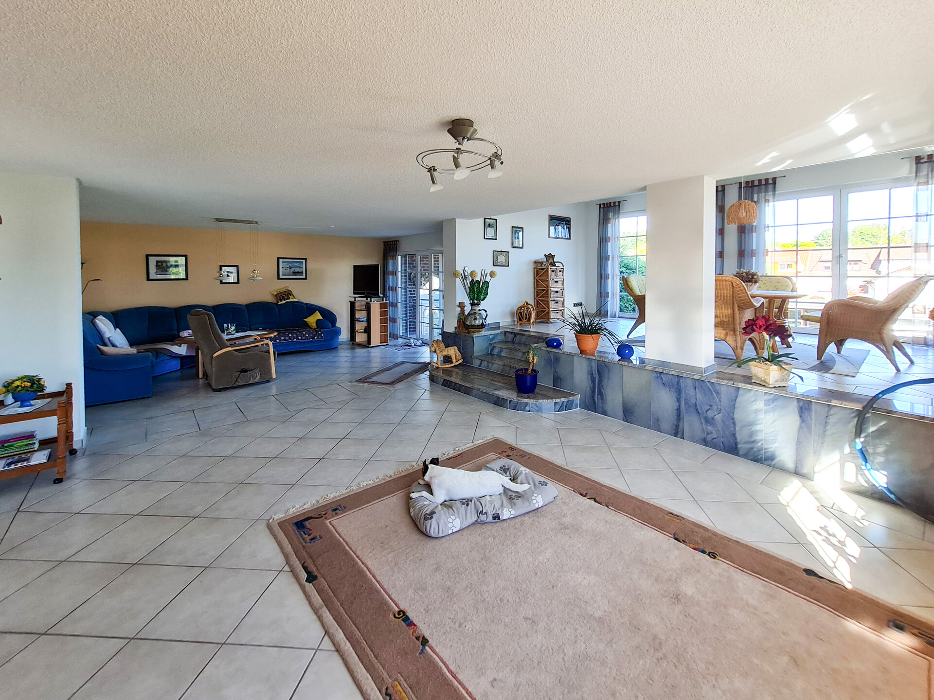 Zum Verkauf steht ein geräumiges, sehr gepflegtes Ein.-/Zweifamilienhaus mit 3 Garagen und einer kleinen Halle. Das Objekt wurde ca. 1957 in solider, massiver Bauweise errichtet. Anbau 1 erfolgte ca. 1968 und der 2. Anbau ca. 2000. Die Wohnfläche von ca. 340 m² teilt sich, wie folgt, auf: Erdgeschoss ca. 180 m² und Obergeschoss ca. 160 m². Zudem ist die Immobilie unterkellert, dort befinden sich auch die 3 Garagen. Neben dem Haus wurde eine Halle von ca. 170 m² und einem Nebenraum von 26m² errichtet. Aufgrund des großen Innenhofs sind dort einige Stellplätze vorhanden. Das Grundstück von ca. 1.320 m² ist im hinteren Gartenbereich pflegeleicht mit Beeten und kleinen Nebengebäuden angelegt. Dort befindet sich auch eine gemütliche, große Terrasse.