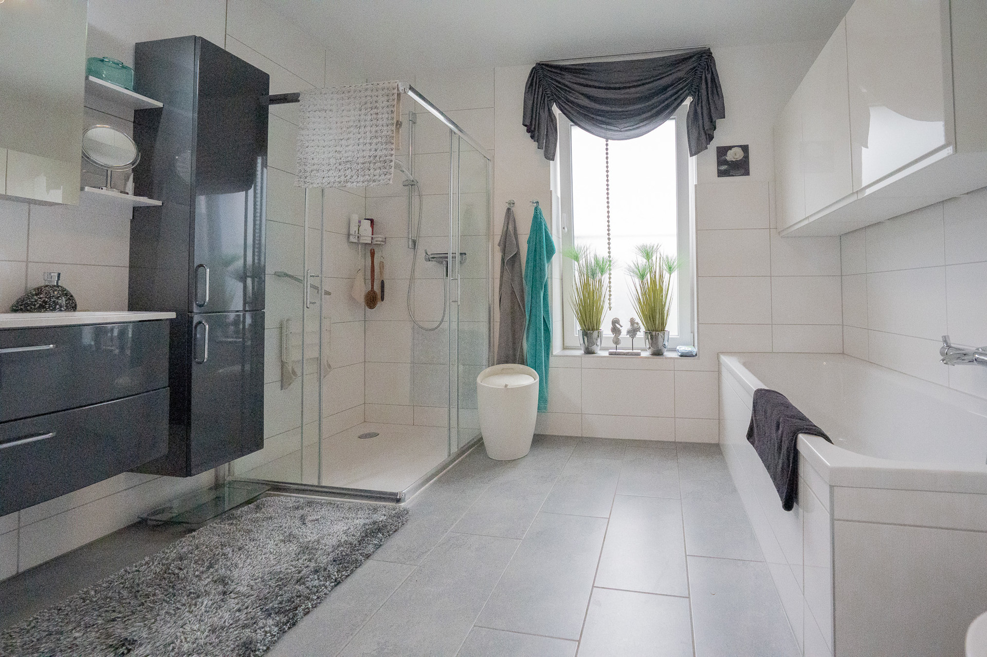 – Tageslichtbad mit Badewanne und separater Dusche.