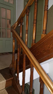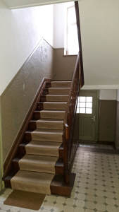 In dem allgemeinen Treppenhaus wurden bewusst die Design-Elemente des Ursprungsbaujahrs beibehalten. Das massive Holztreppenhaus, die hohen Decken, die alten Fliesen und die ursprünglichen Holz-Wohnungseingangstüren (teilweise mit Sprossenfensterelementen) bieten einen ganz speziellen Charme.