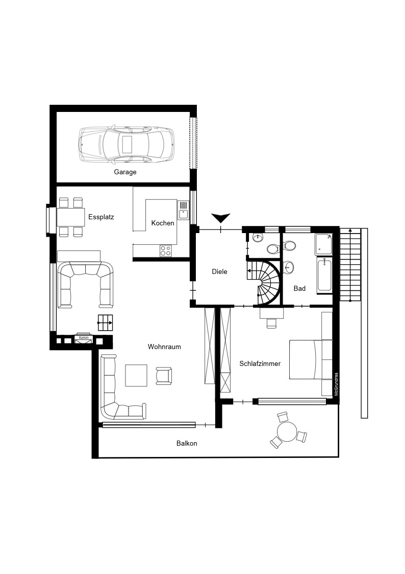 – Garage + lange Einfahrt