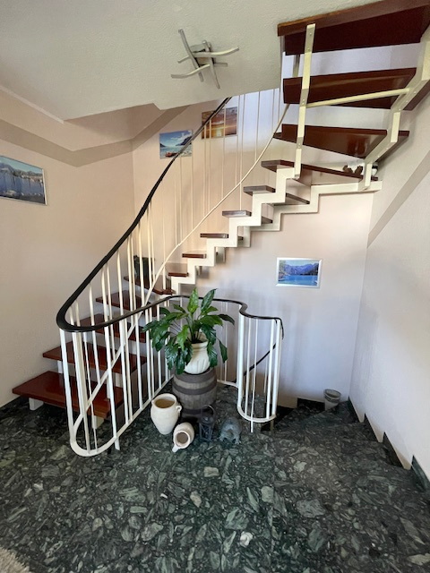 Die Immobilie besteht aus zwei separaten Hälften (die rechte Hälfte ist frei), die jeweils über vier Zimmer plus Essdiele, eine Küche, ein Badezimmer und ein Gäste-WC verfügen.