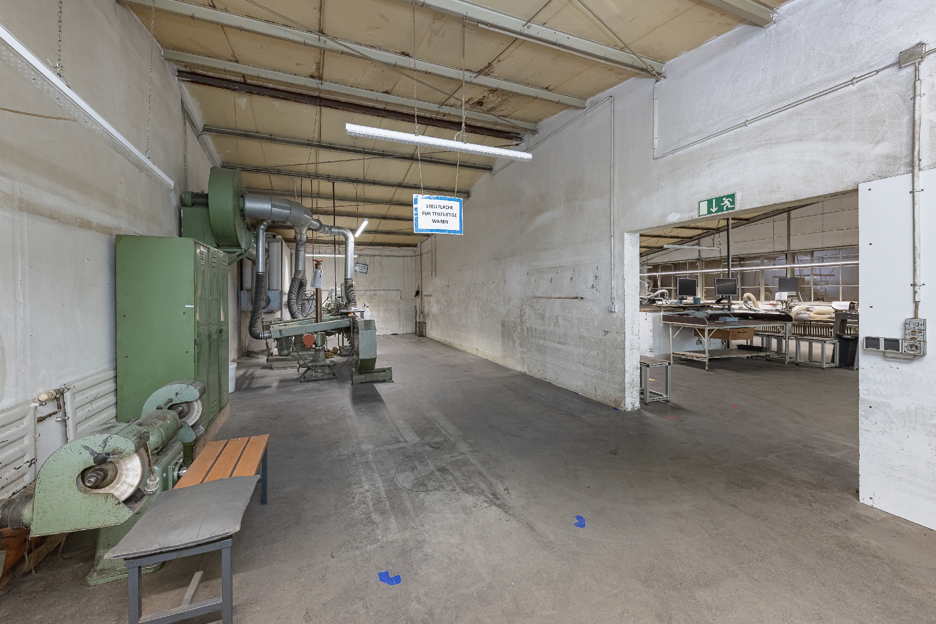 Die Produktionshallen sind ebenerdig über Roll- und Flügeltore zugänglich und bieten dank robuster Bauweise hohe Traglastreserven – ideal für Maschinenparks, Flurfördertechnik oder schweres Lagergut. Die Gebäudeabschnitte sind intern miteinander verbunden und ermöglichen sowohl eine durchgehende Nutzung als auch eine flexible Teilung für unterschiedliche Betriebsbereiche oder eine Teilvermietung.