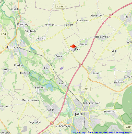 Umgeben von Feldern und Grünflächen bietet die Lage ideale Bedingungen für alle, die gerne draußen aktiv sind: Spaziergänge, Fahrradtouren oder einfach der Blick ins Grüne prägen den Alltag. Die verkehrstechnische Anbindung ist dabei überraschend komfortabel. Über die nahegelegenen Bundesstraßen sowie die Autobahnen A44 und A61 sind Jülich, Erkelenz und Grevenbroich schnell erreichbar, und auch die Metropolregionen Köln, Düsseldorf und Aachen sind gut angebunden. Darüber hinaus sind die Städte Linnich und Titz in nur rund 8 km Entfernung sehr gut zu erreichen.